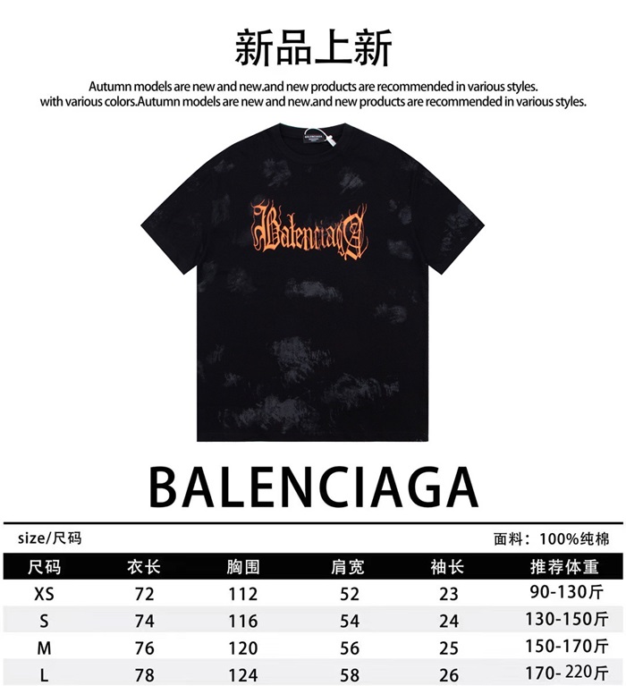 バレンシアガメンズブラッククルーネック半袖Tシャツa431