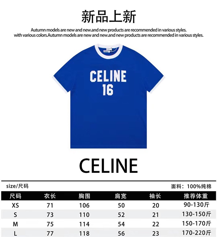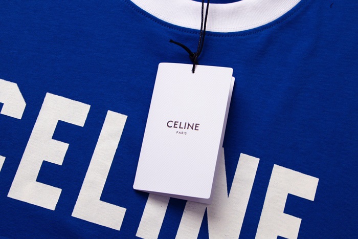 セリーヌメンズクルーネックブルー半袖Tシャツe160