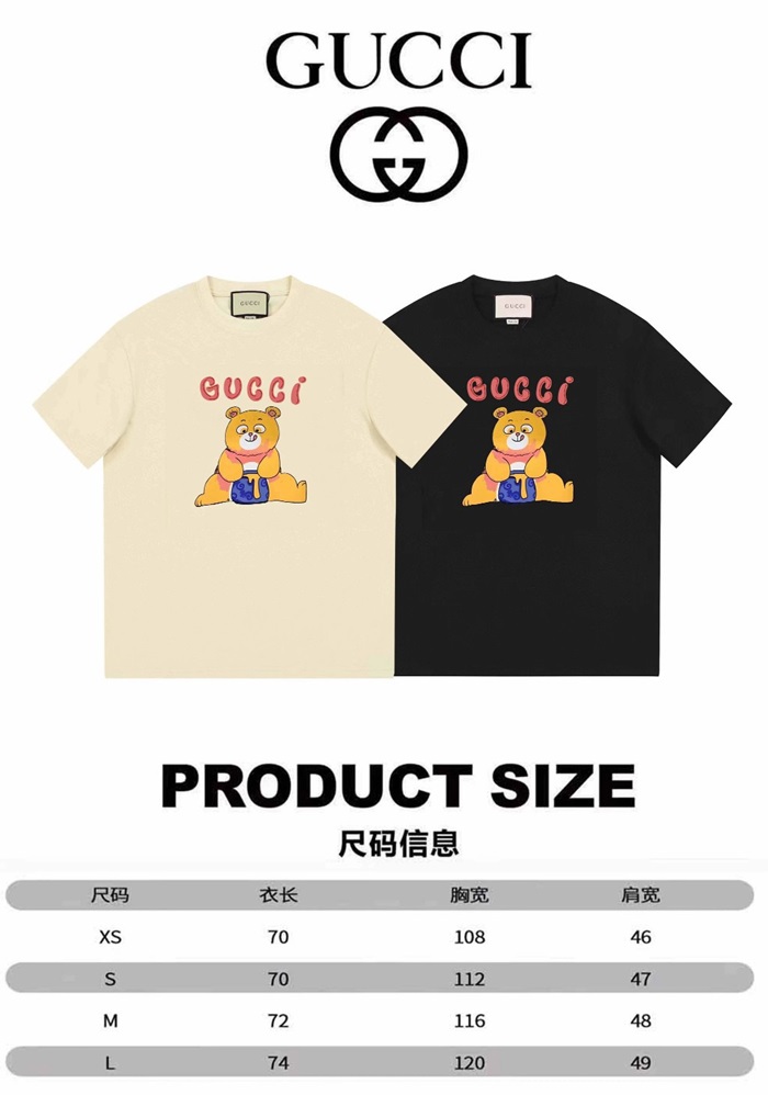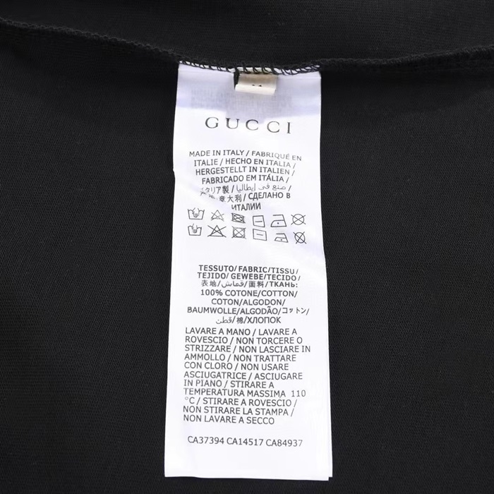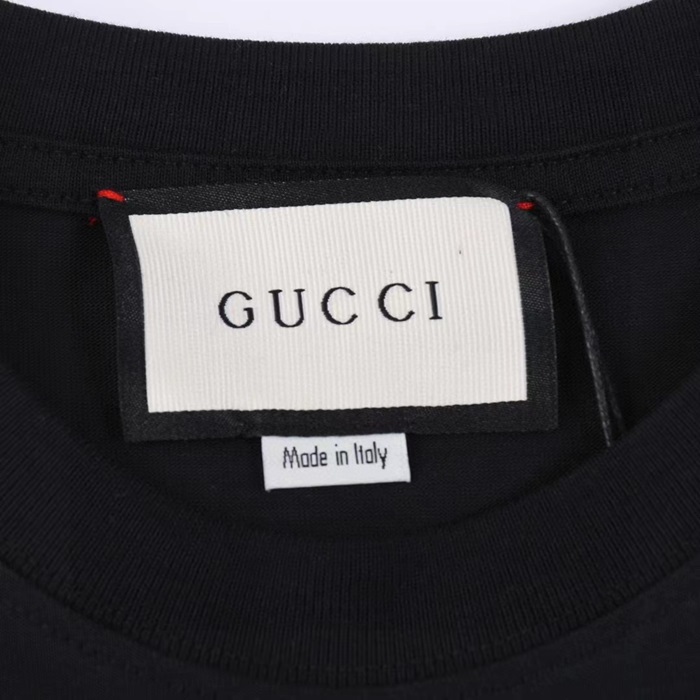 グッチユニセックスブラッククルーネック半袖Tシャツu716