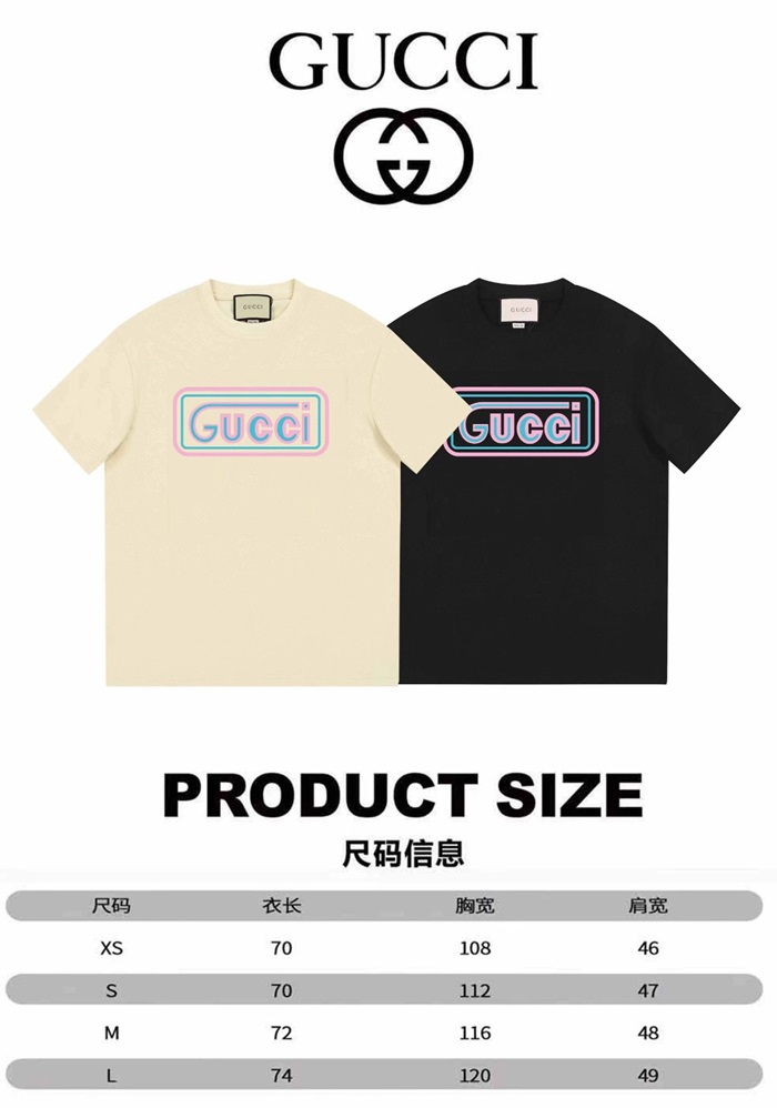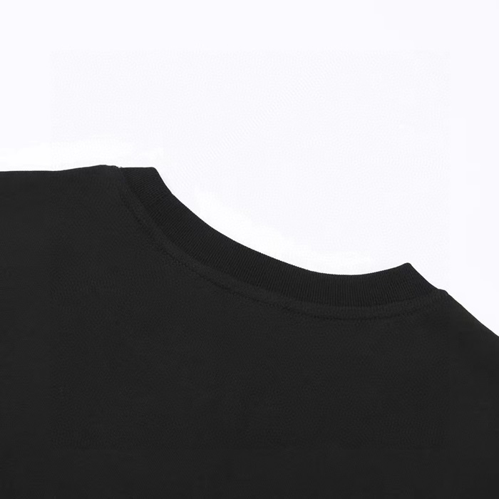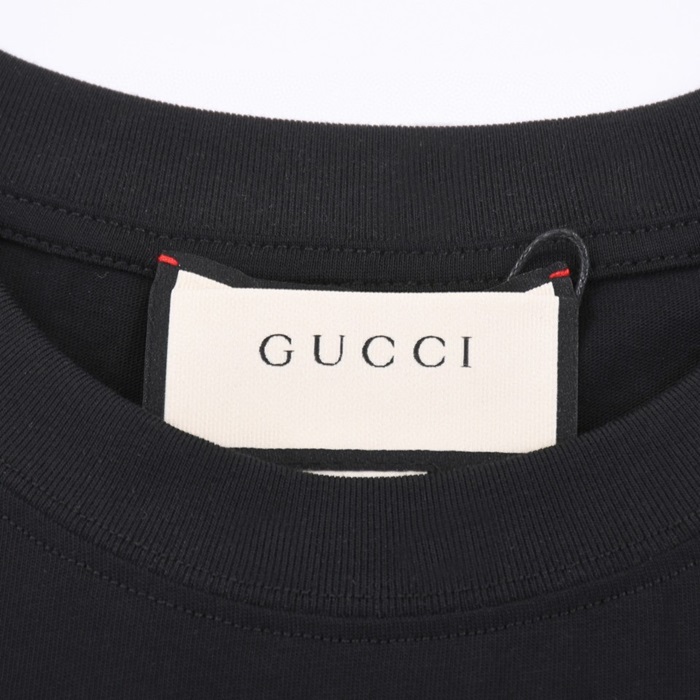 グッチユニセックスブラッククルーネック半袖Tシャツu719