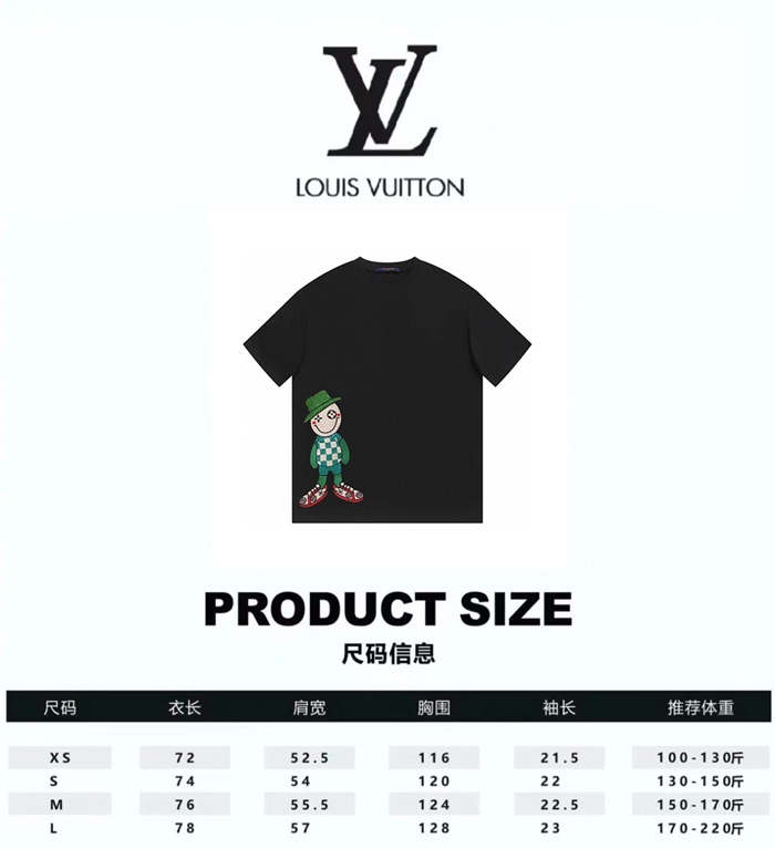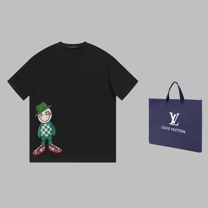 ルイヴィトンメンズブラッククルーネック半袖Tシャツv1101