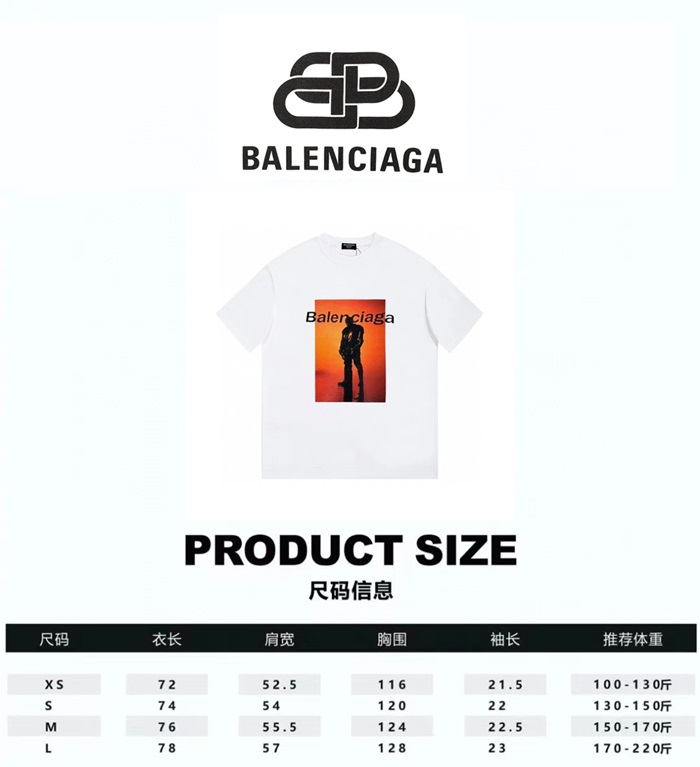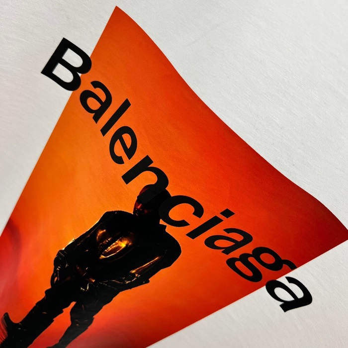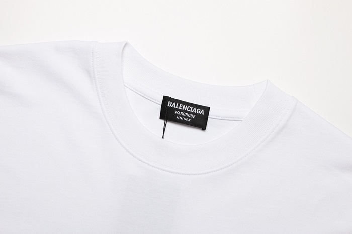 バレンシアガメンズホワイトクルーネック半袖Tシャツa436