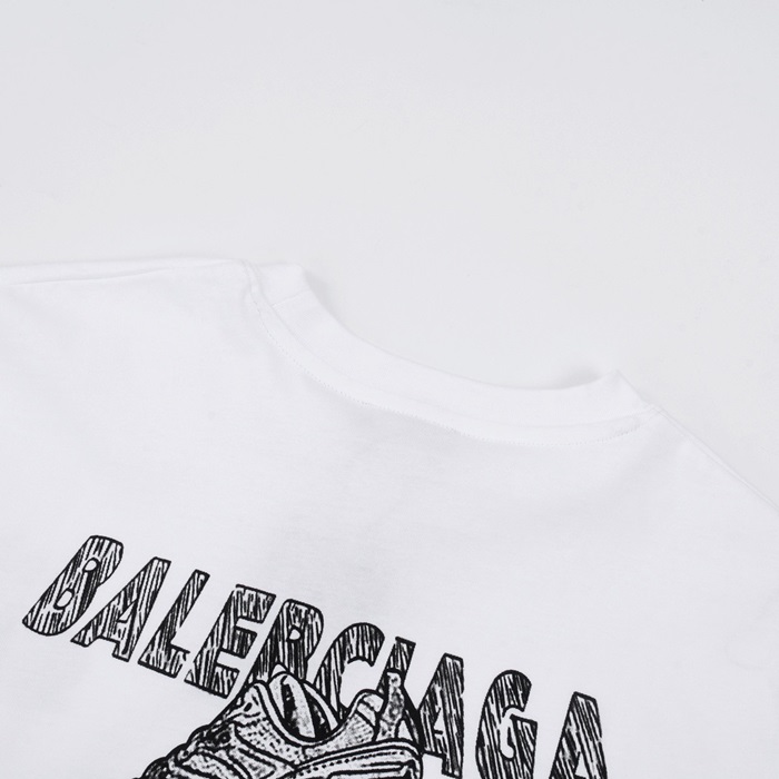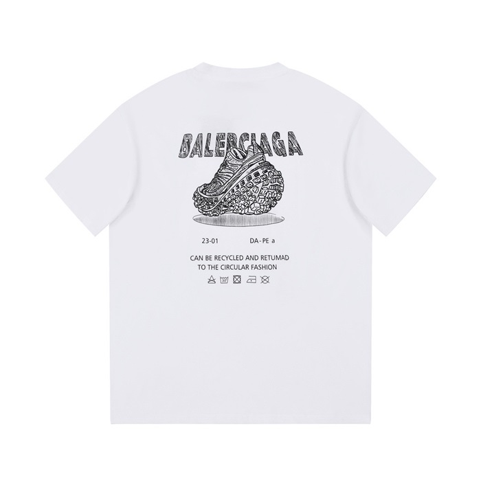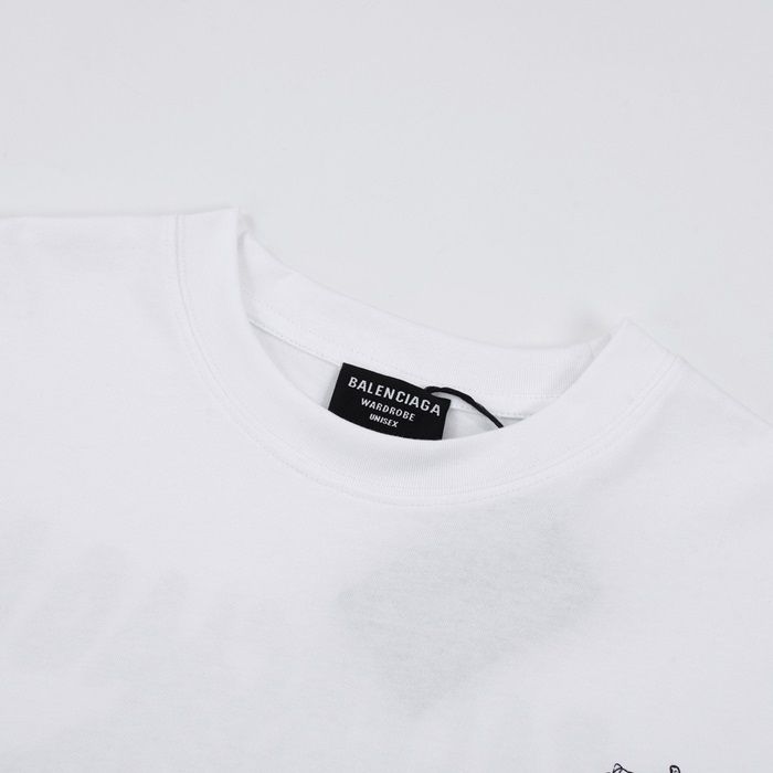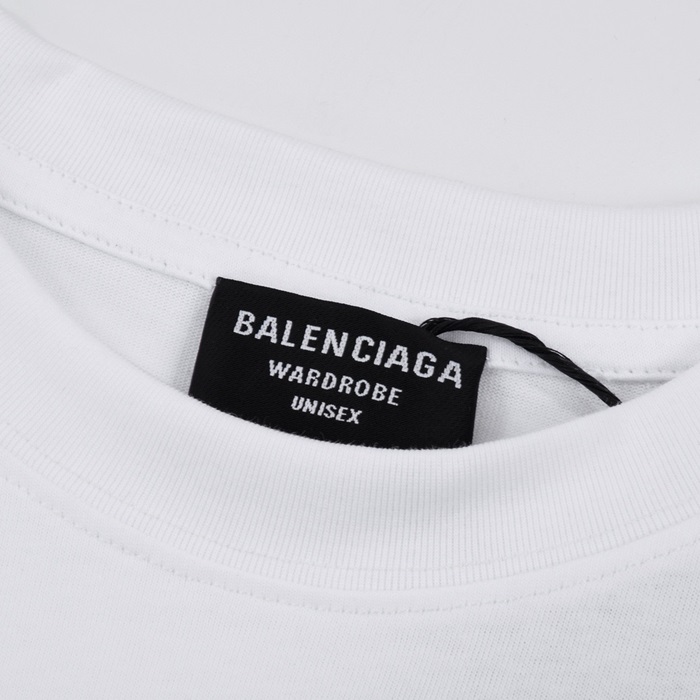 バレンシアガメンズホワイトクルーネック半袖Tシャツa440