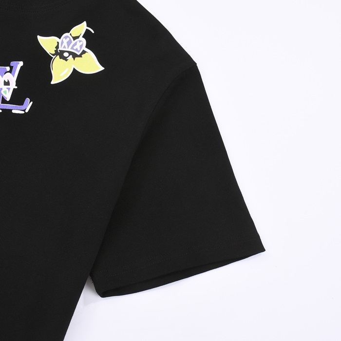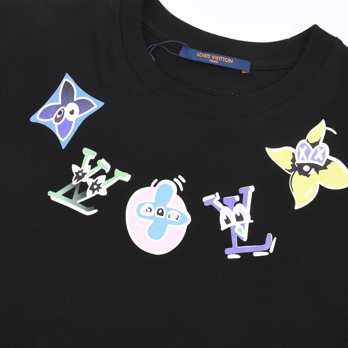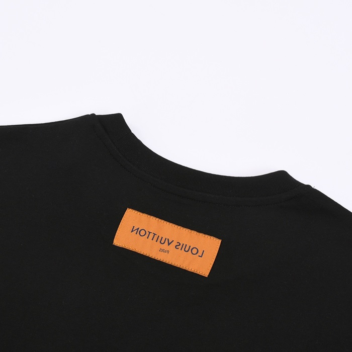ルイヴィトンメンズブラッククルーネック半袖Tシャツv1107