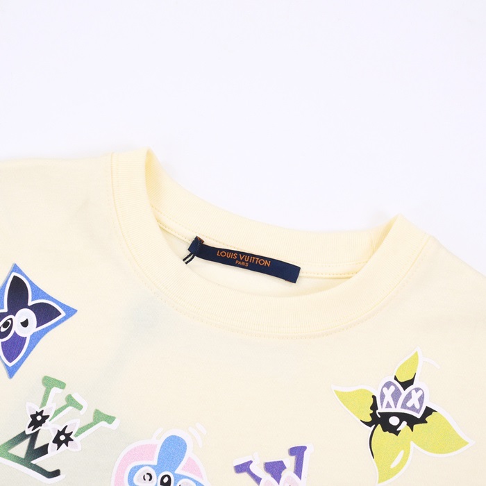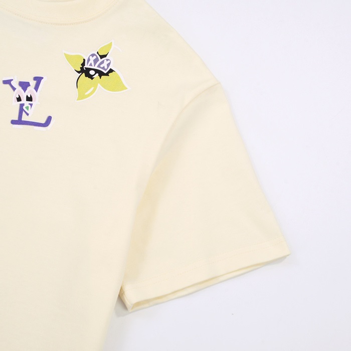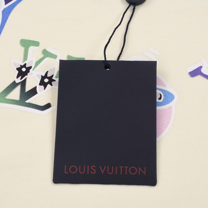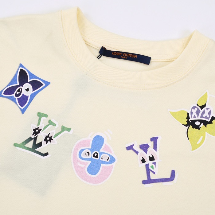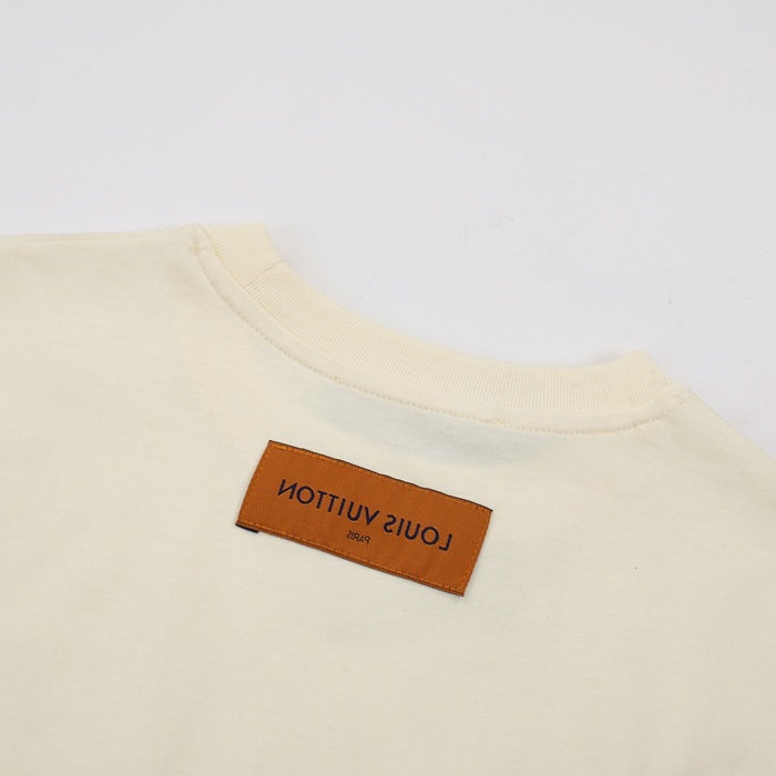 ルイヴィトンメンズアイボリークルーネック半袖Tシャツv1108
