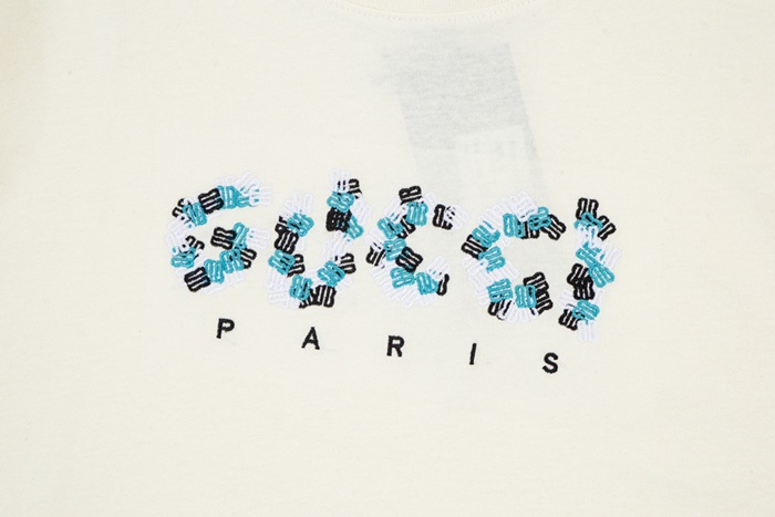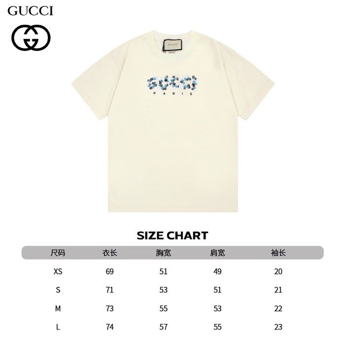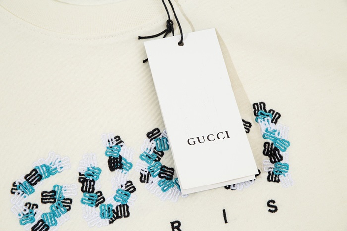 グッチユニセックスアイボリークルーネック半袖Tシャツu724