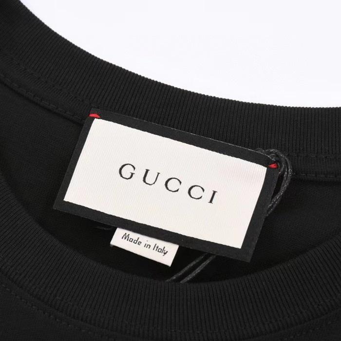 グッチユニセックスブラッククルーネック半袖Tシャツu727