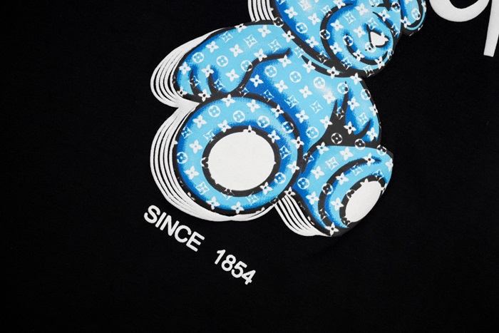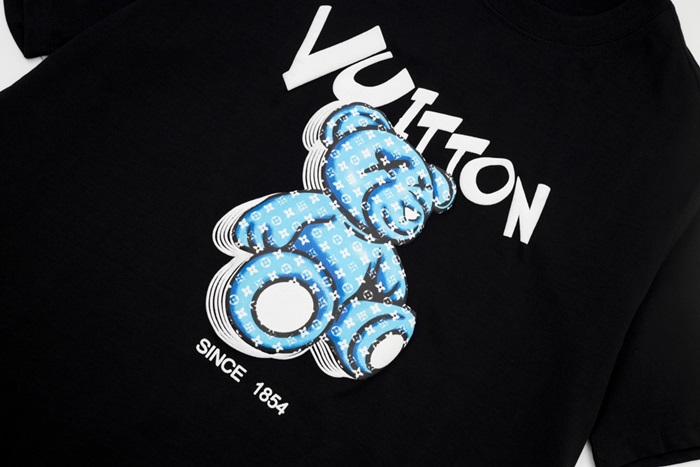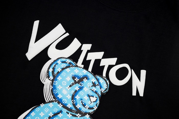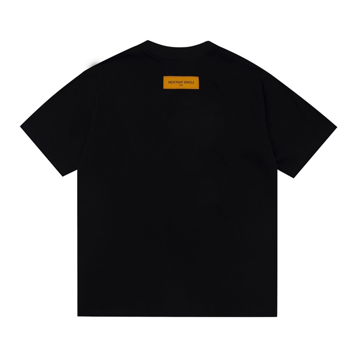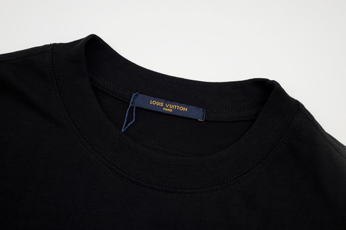 ルイヴィトンメンズブラッククルーネック半袖Tシャツv1115