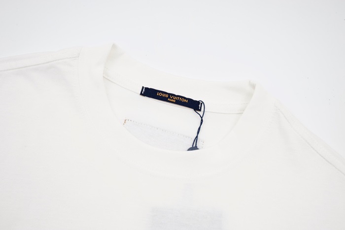 ルイヴィトンメンズホワイトクルーネック半袖Tシャツv1118