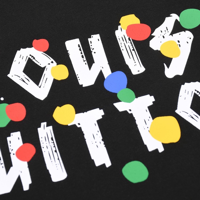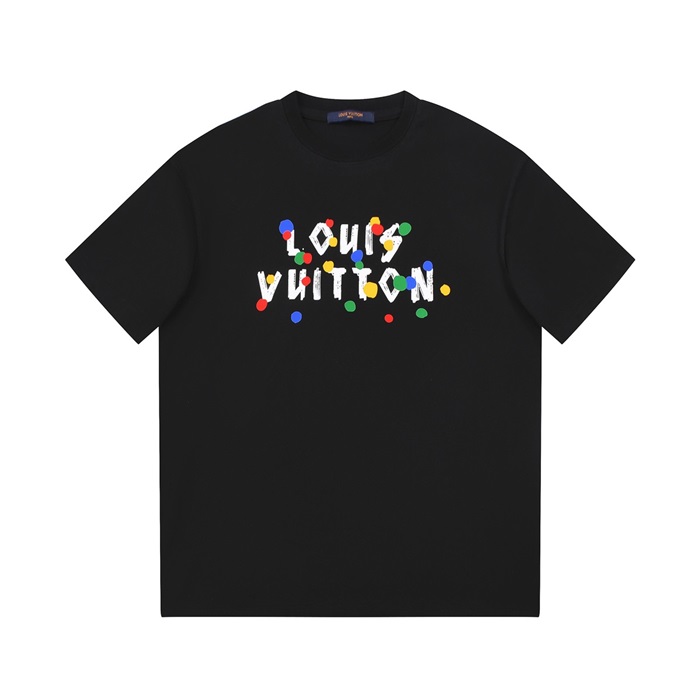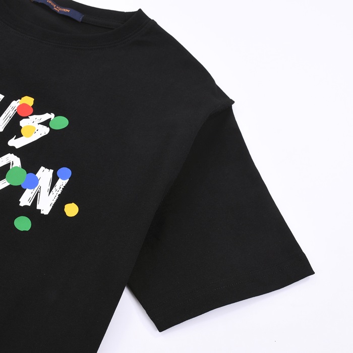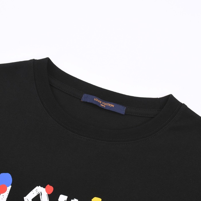 ルイヴィトンメンズブラッククルーネック半袖Tシャツv1123