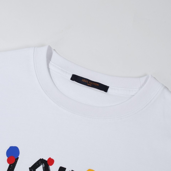 ルイヴィトンメンズホワイトクルーネック半袖Tシャツv1126