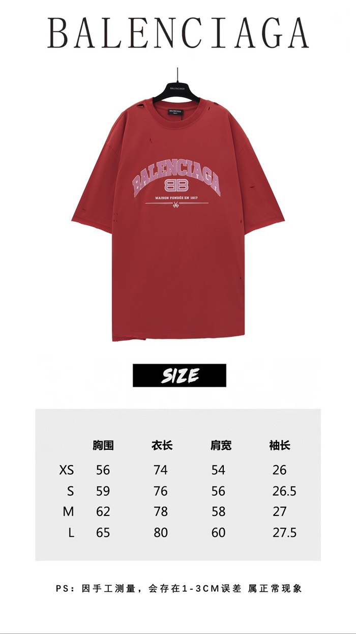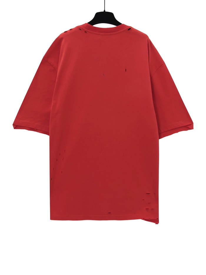 バレンシアガメンズレッドクルーネック半袖Tシャツa446