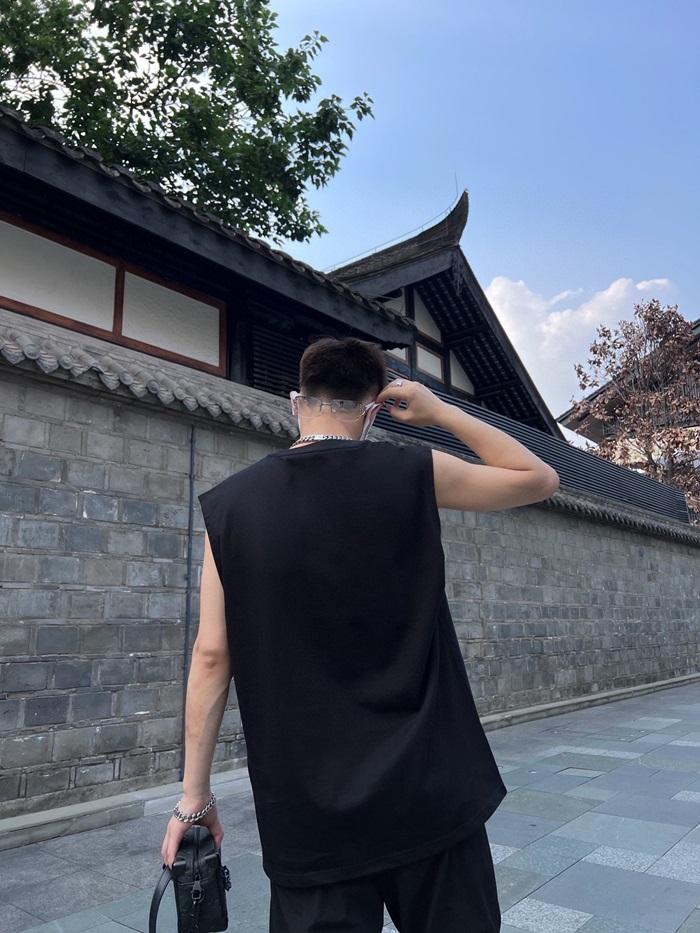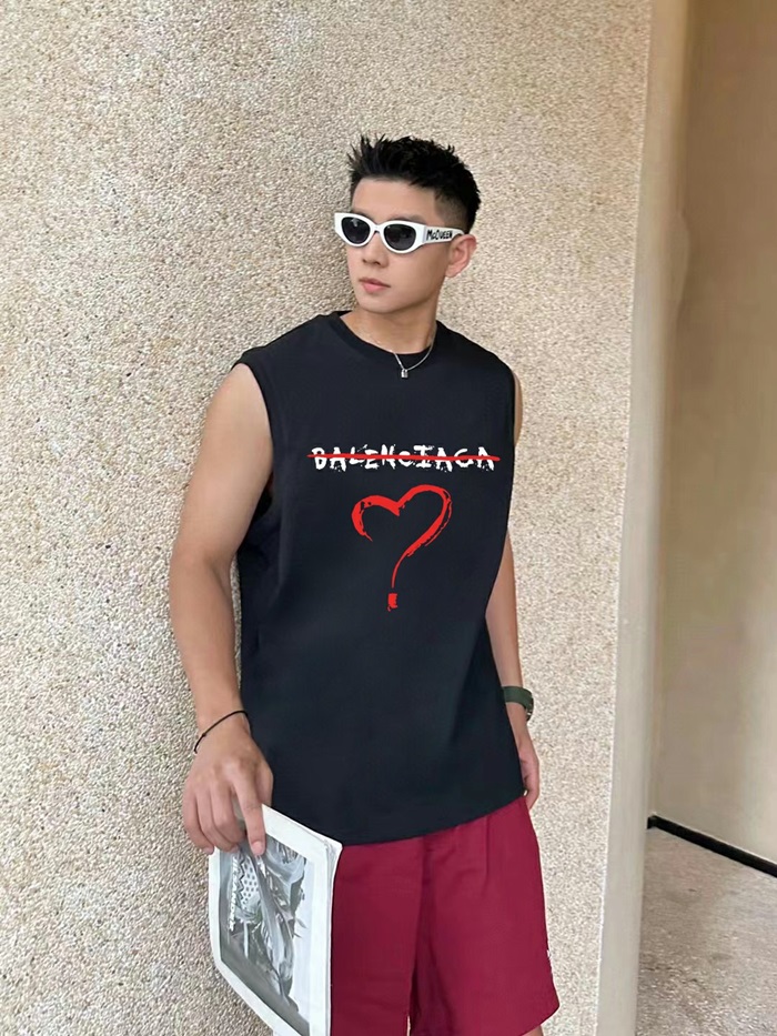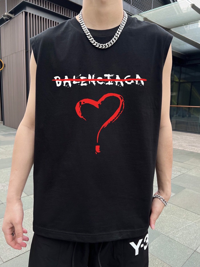 バレンシアガメンズブラッククルーネックタンクトップa449