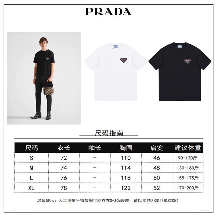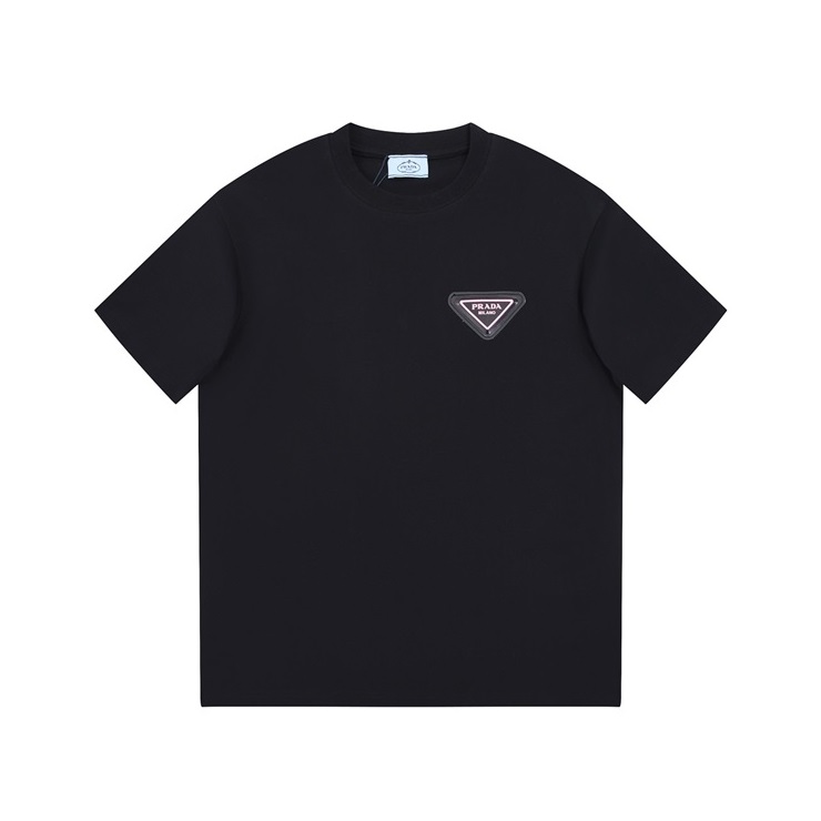 プラダメンズクルーネックブラック半袖Tシャツr538