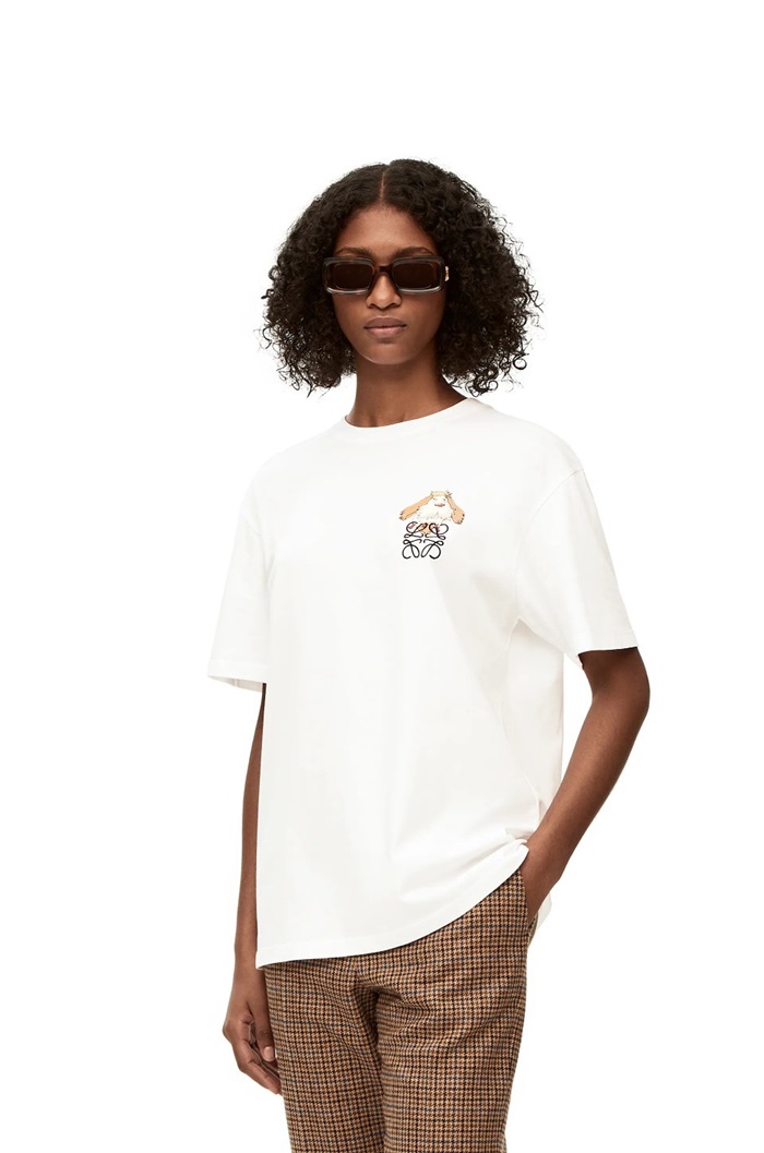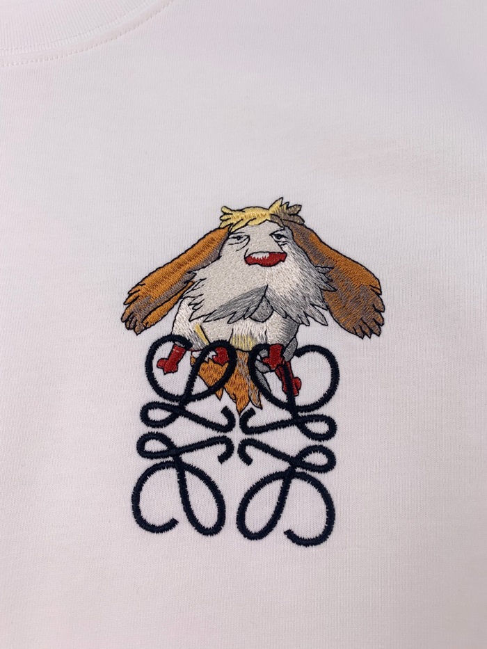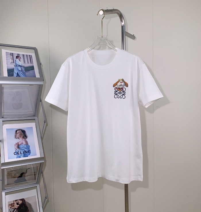 ロエベユニセックスイニシャルホワイト半袖Tシャツe726