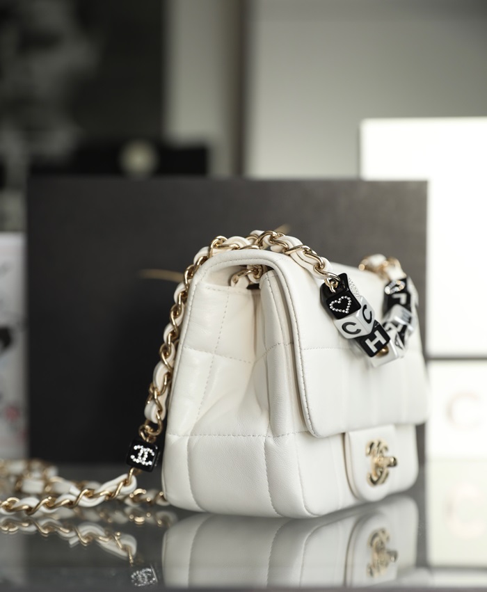シャネルレディースホワイトチェーンバッグh428