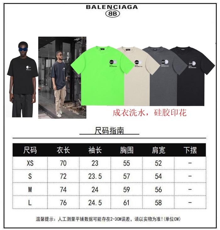 バレンシアガメンズグリーンクルーネック半袖Tシャツa450