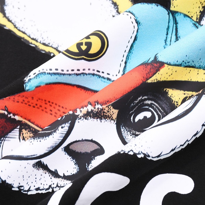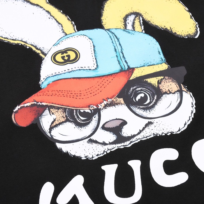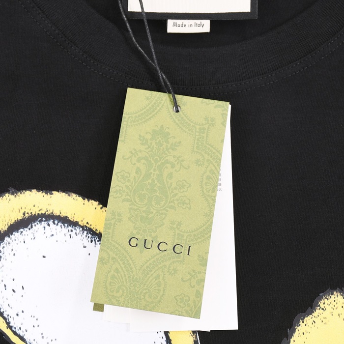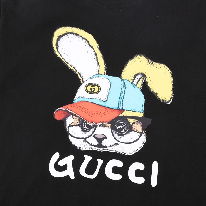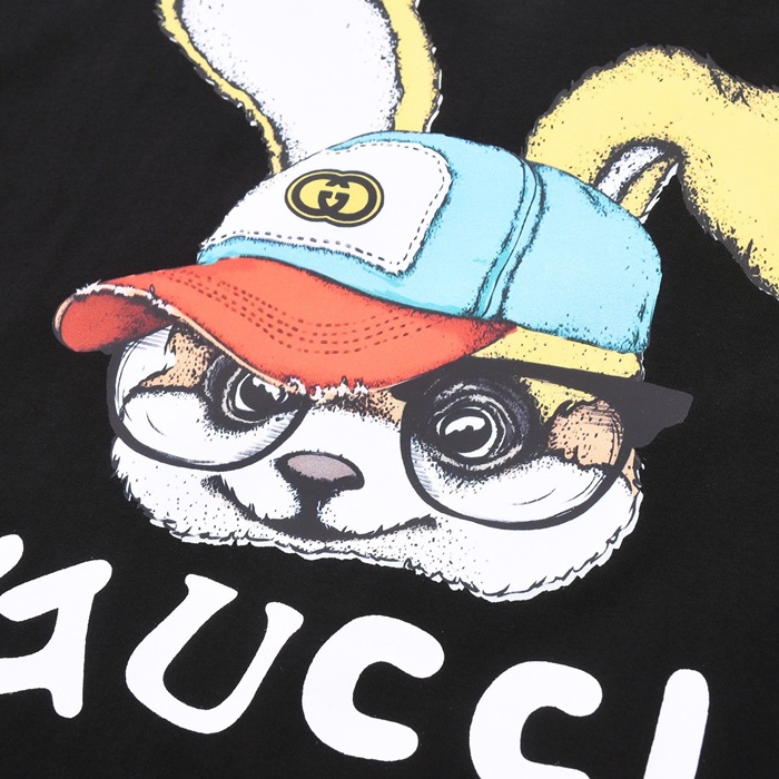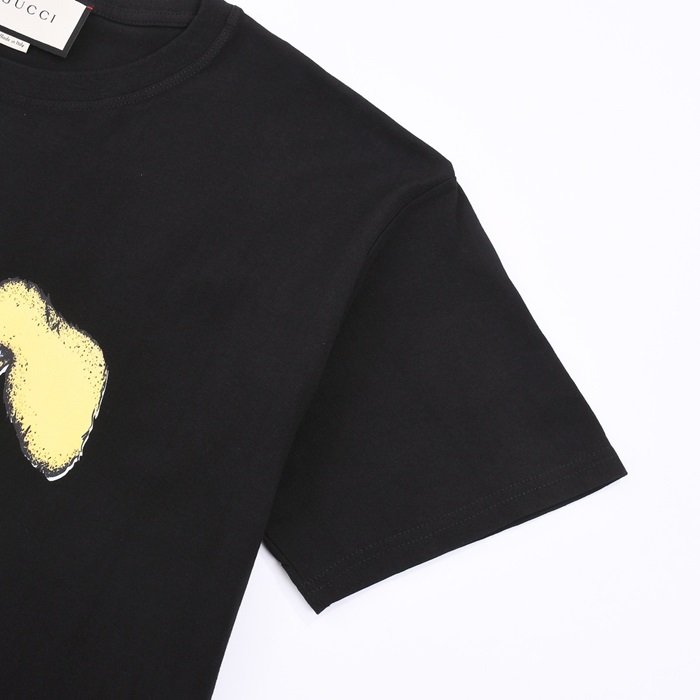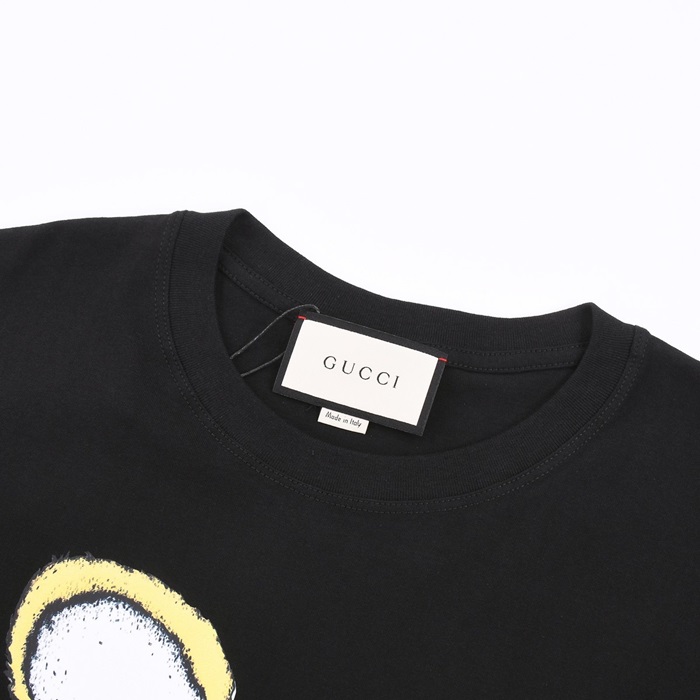 グッチユニセックスブラッククルーネック半袖Tシャツu729