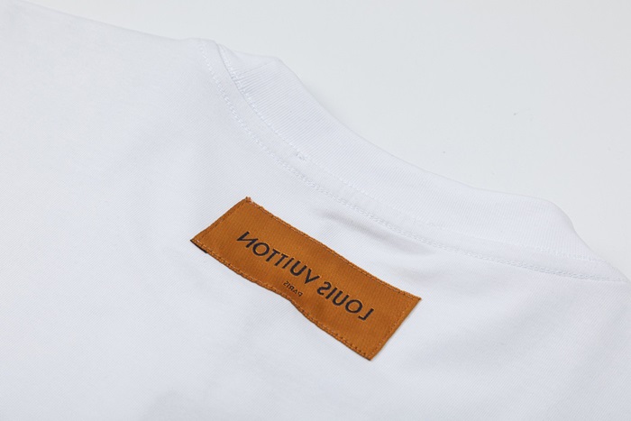ルイヴィトンメンズホワイトクルーネック半袖Tシャツv1137