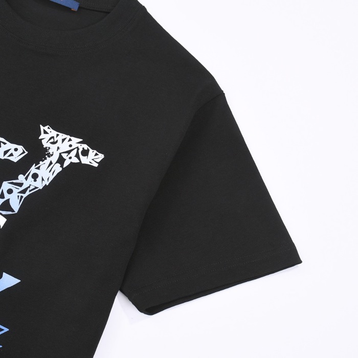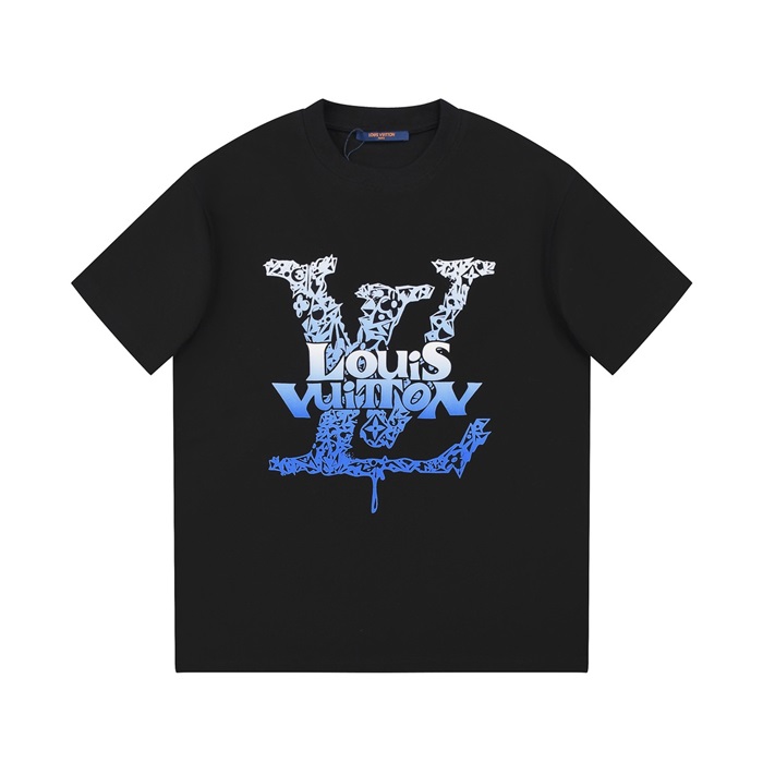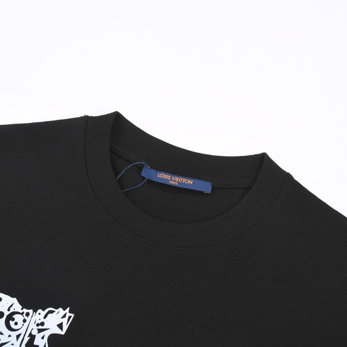 ルイヴィトンメンズブラッククルーネック半袖Tシャツv1152