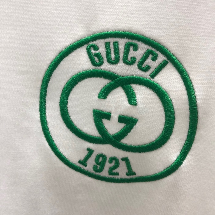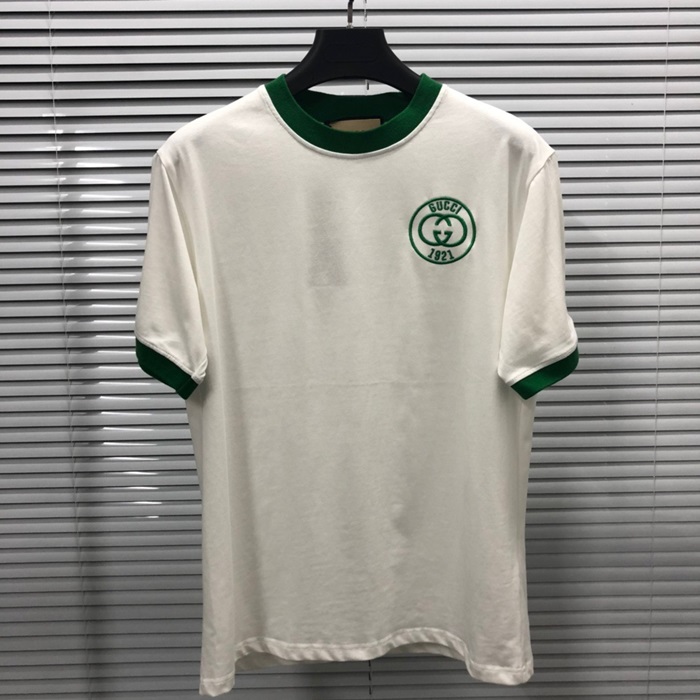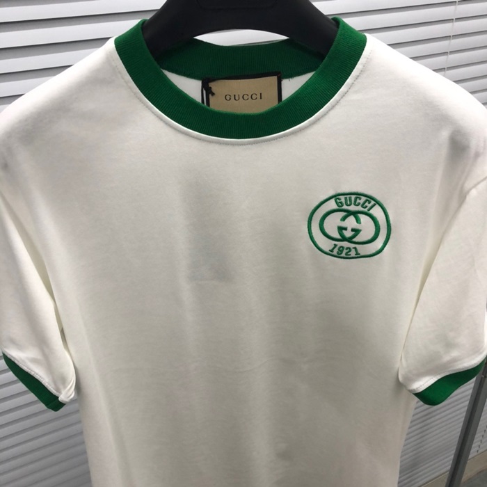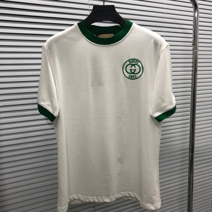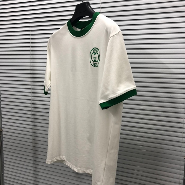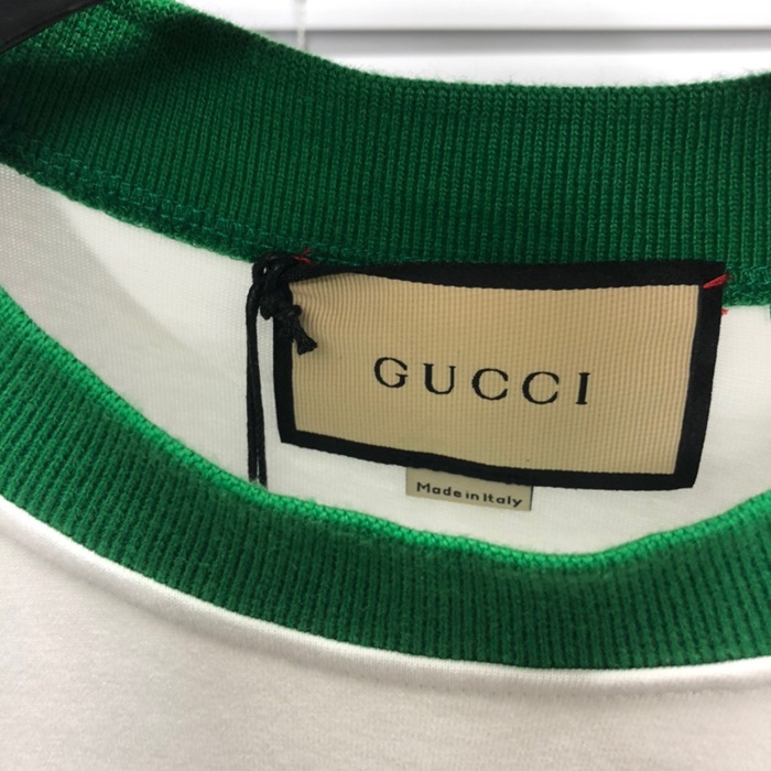 グッチユニセックスホワイトクルーネック半袖Tシャツu738