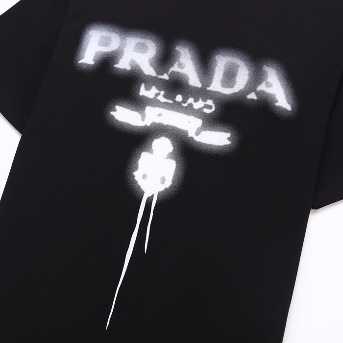 プラダメンズクルーネックブラック半袖Tシャツr546