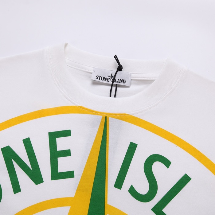 ストーンアイランドメンズホワイトクルーネック半袖Tシャツt74