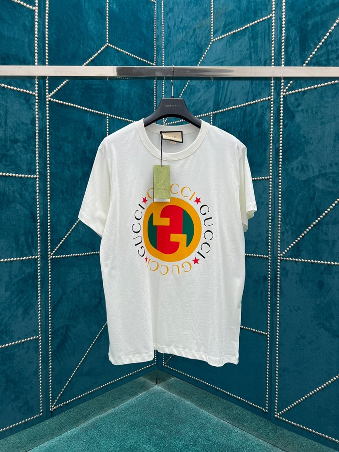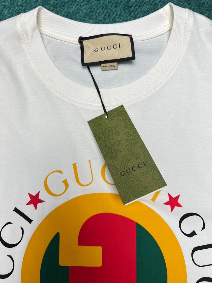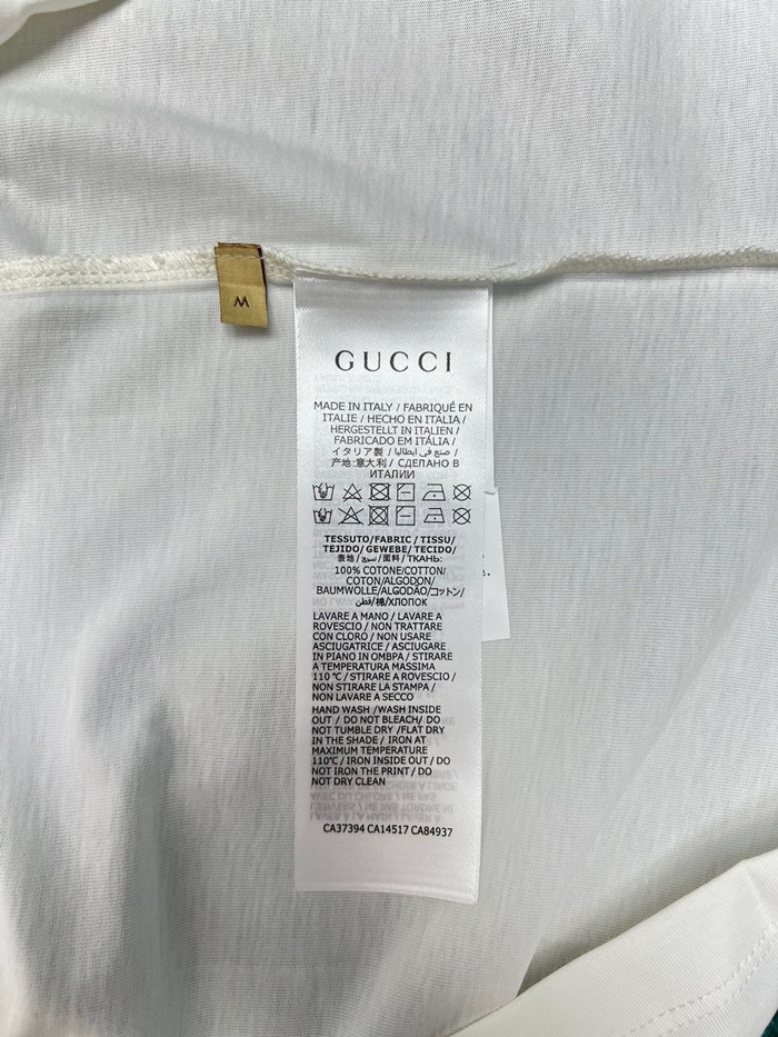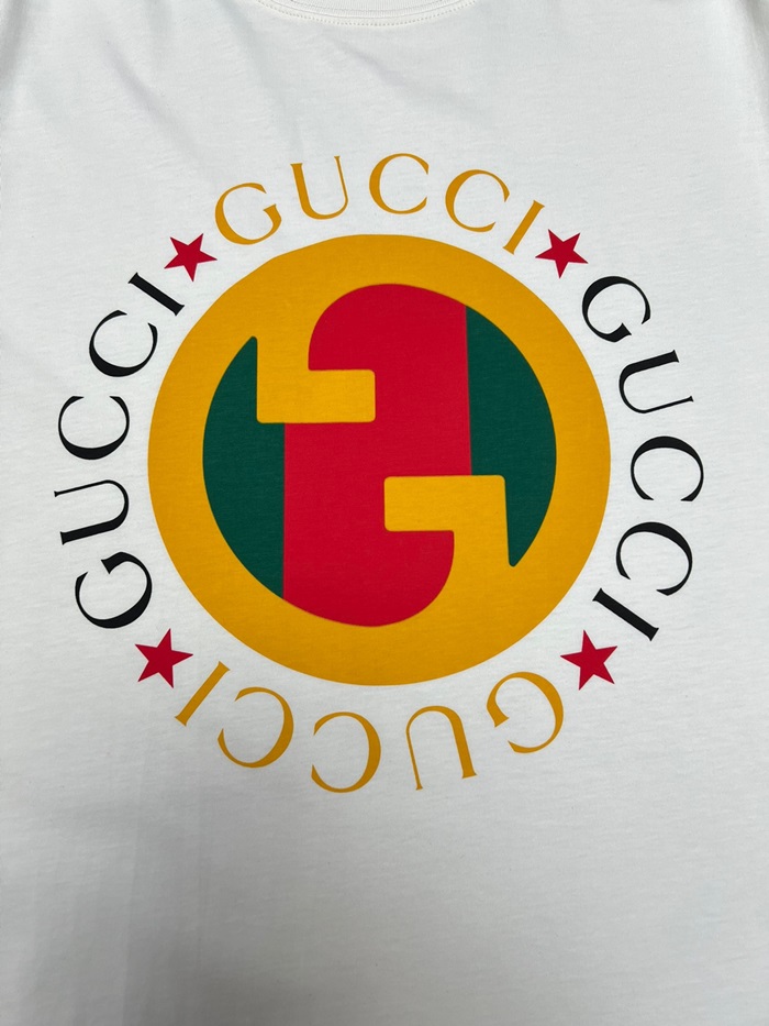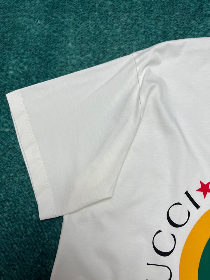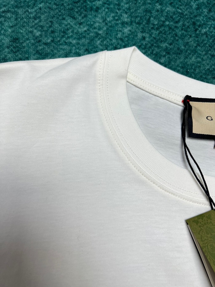 グッチレディースホワイトクルーネック半袖Tシャツu746