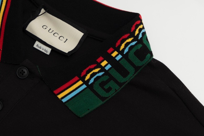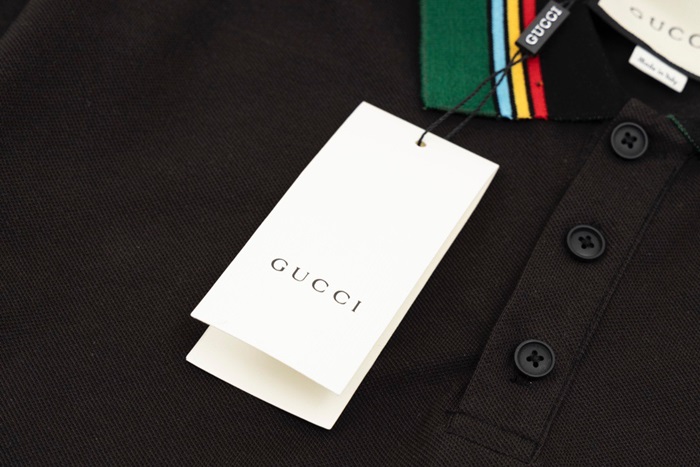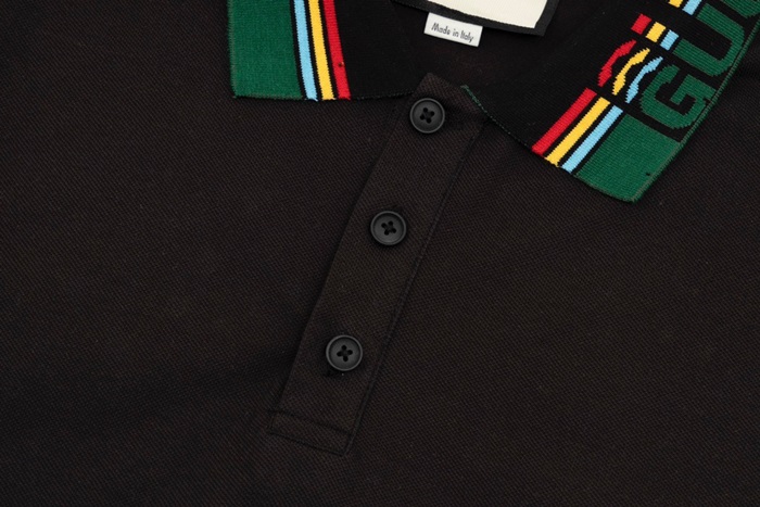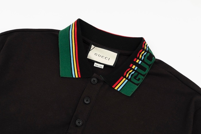 グッチメンズブラックポロ半袖Tシャツu749