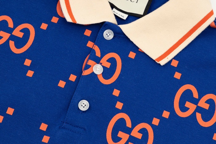 グッチメンズブルーポロ半袖Tシャツu750