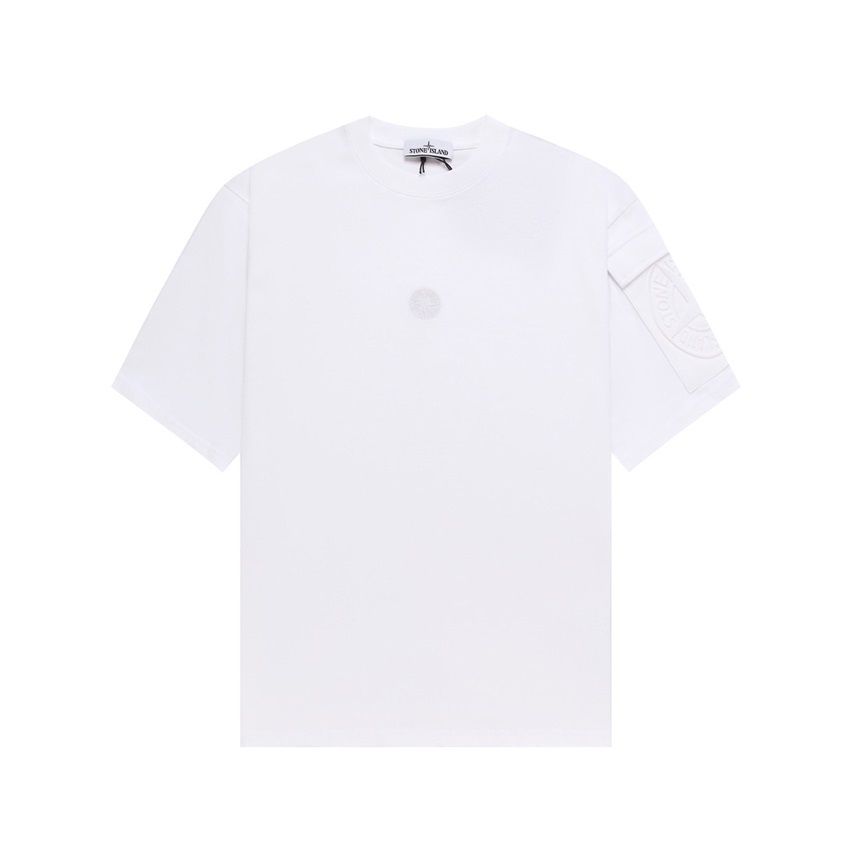 ストーンアイランドメンズホワイトクルーネック半袖Tシャツt80
