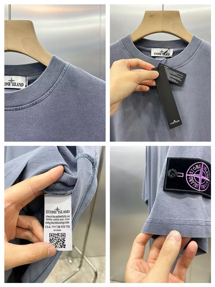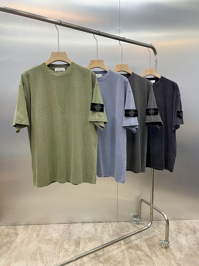 ストーンアイランドメンズグレークルーネック半袖Tシャツt81