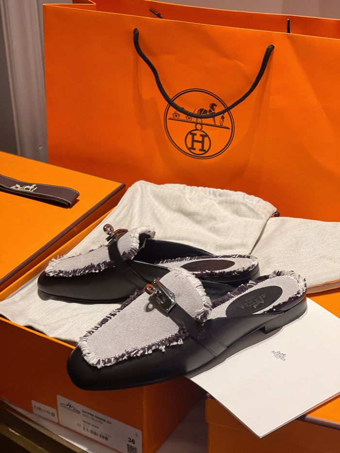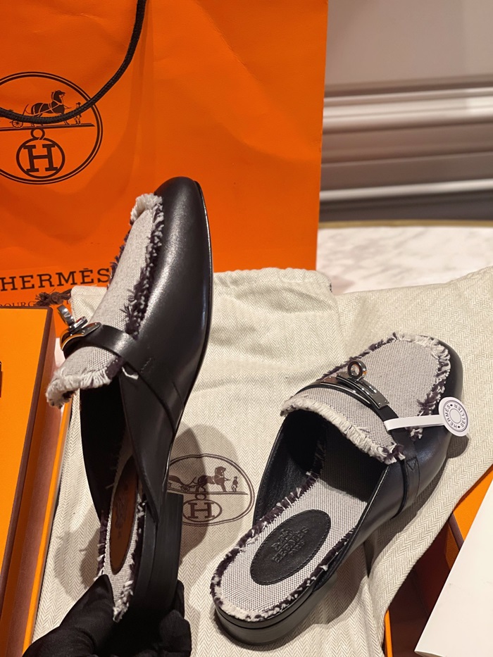 エルメスレディースブラックブローファーe193