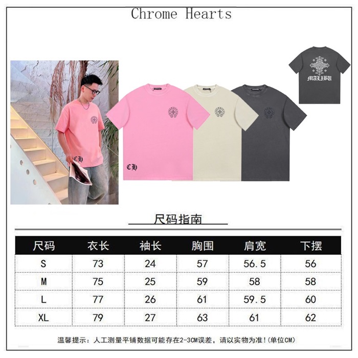 クロムハーツメンズグレークルーネック半袖Tシャツh155