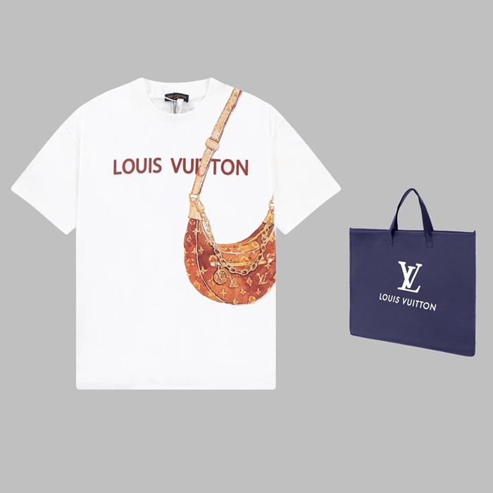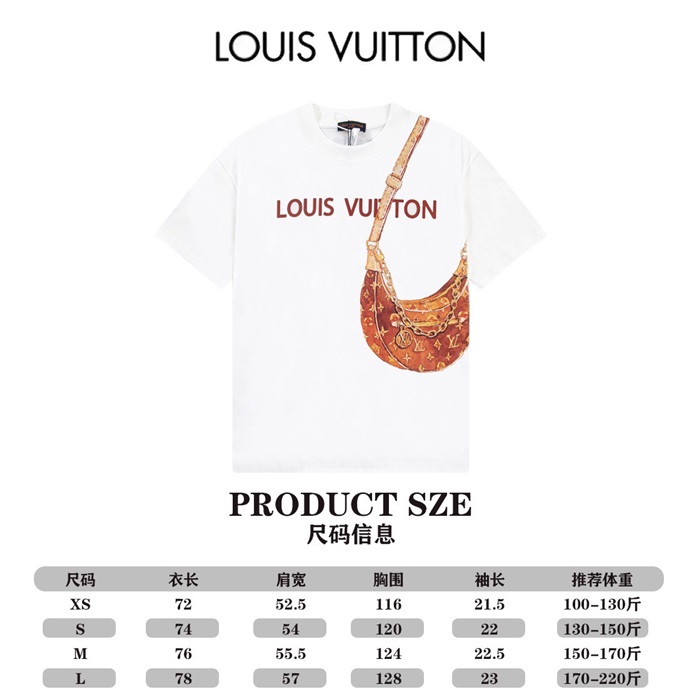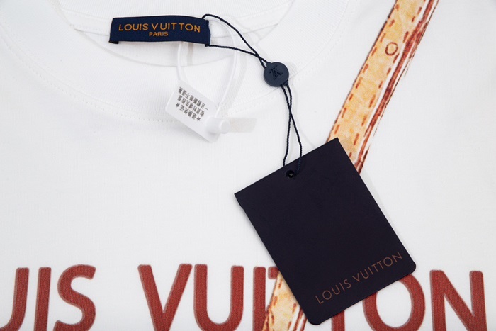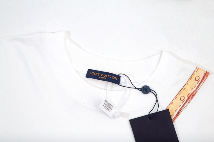 ルイヴィトンメンズホワイトクルーネック半袖Tシャツv1367
