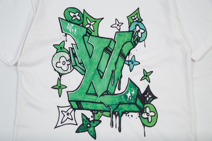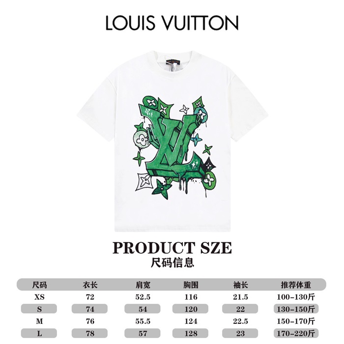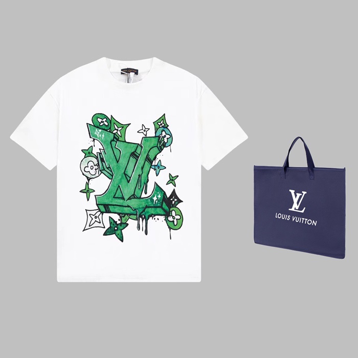 ルイヴィトンメンズホワイトクルーネック半袖Tシャツv1369