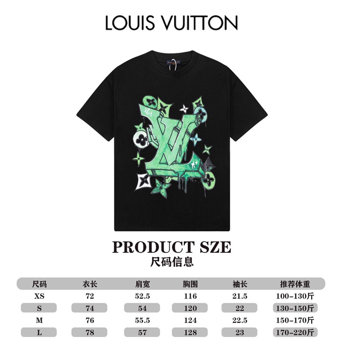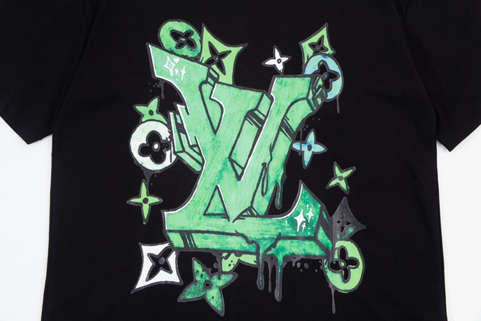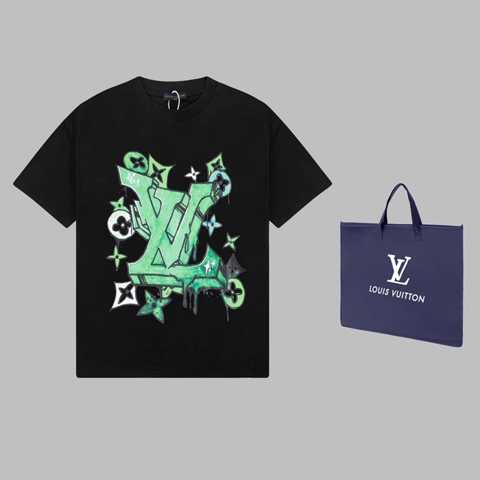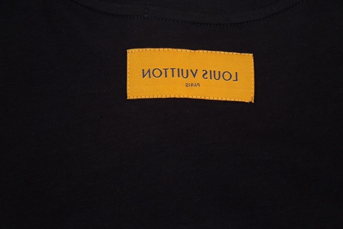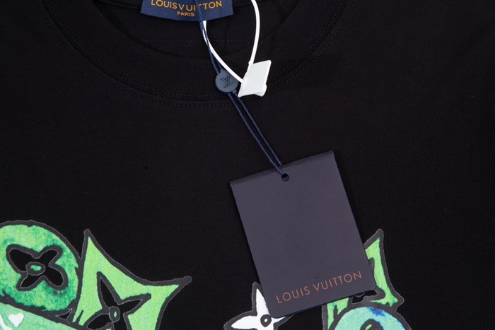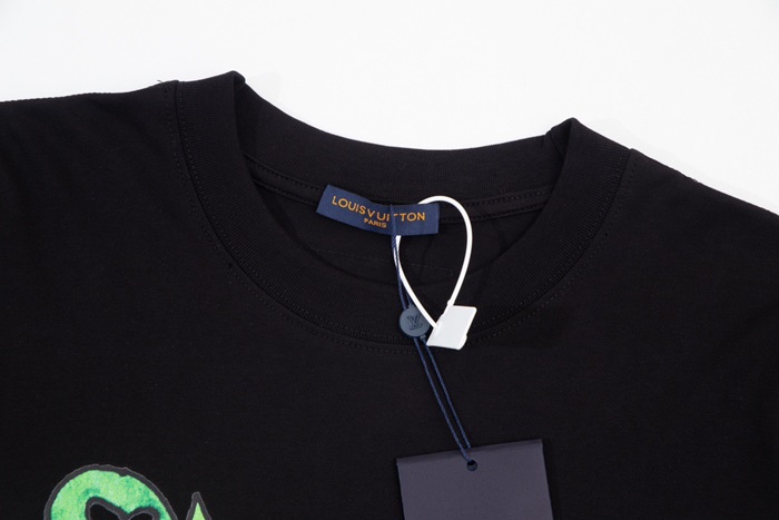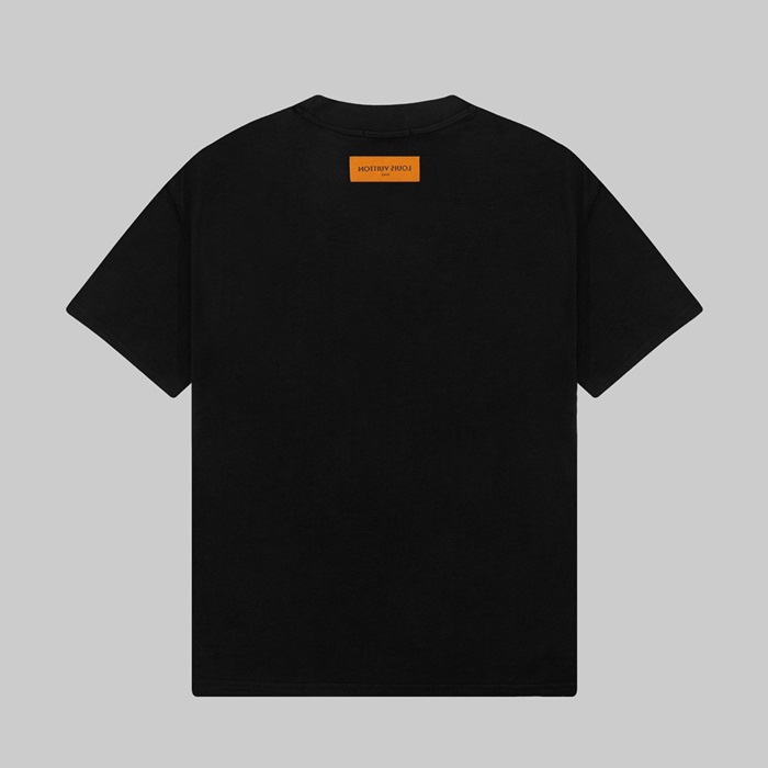 ルイヴィトンメンズブラッククルーネック半袖Tシャツv1370