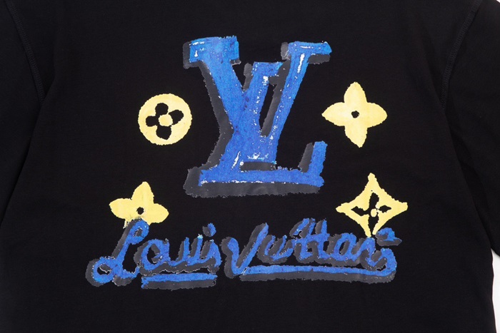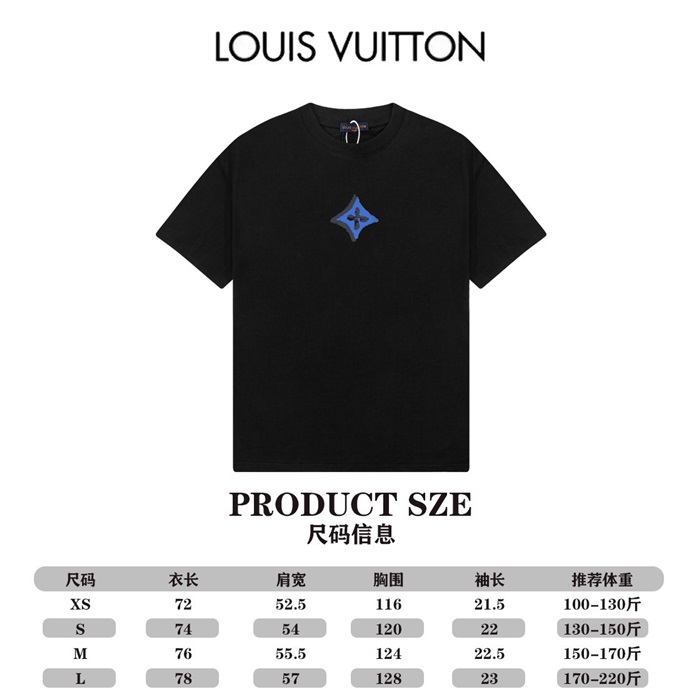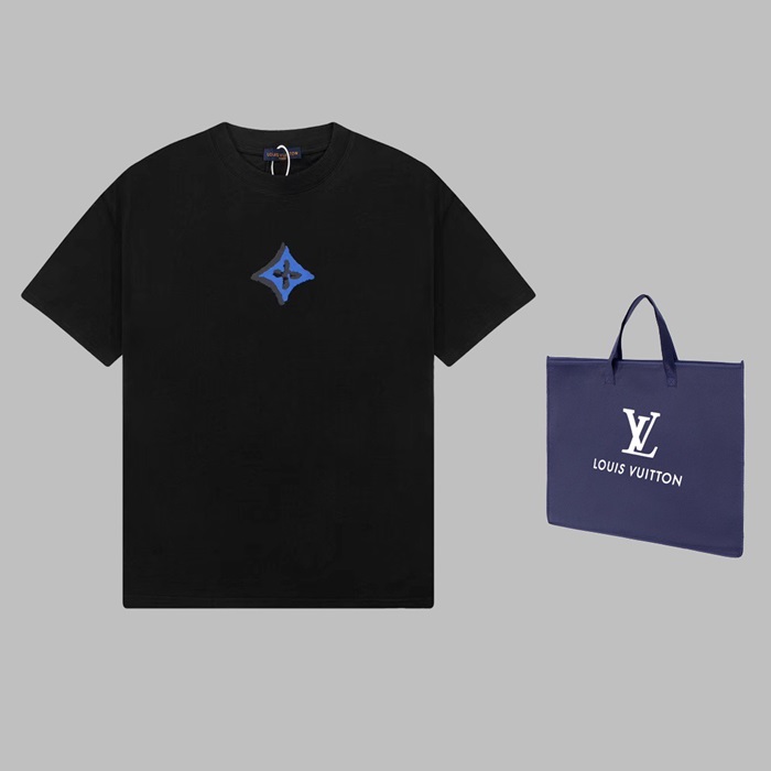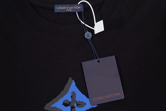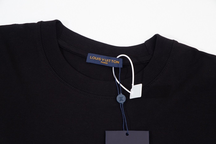 ルイヴィトンメンズブラッククルーネック半袖Tシャツv1372