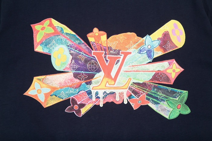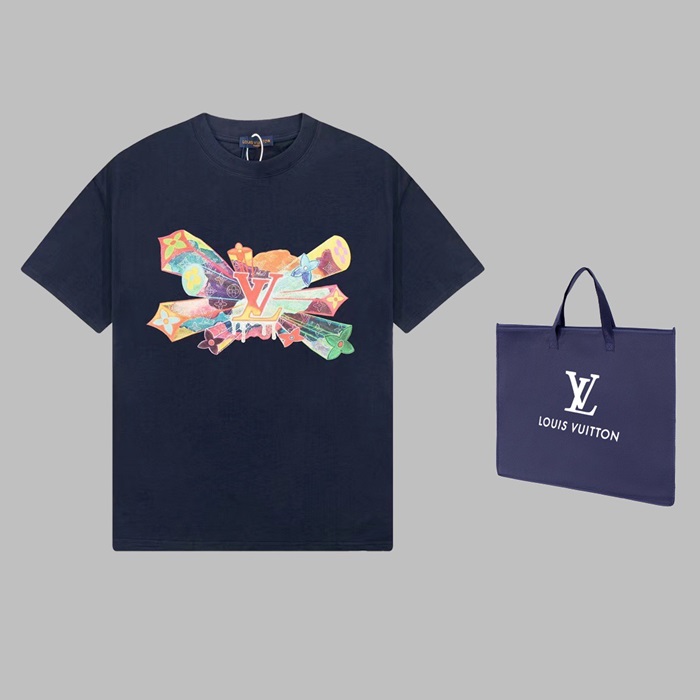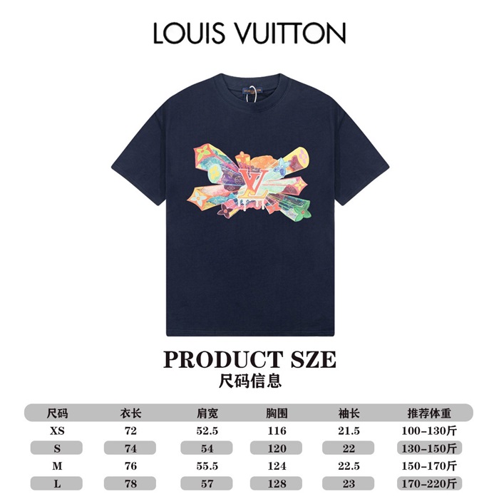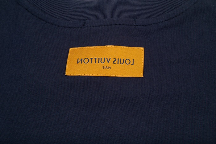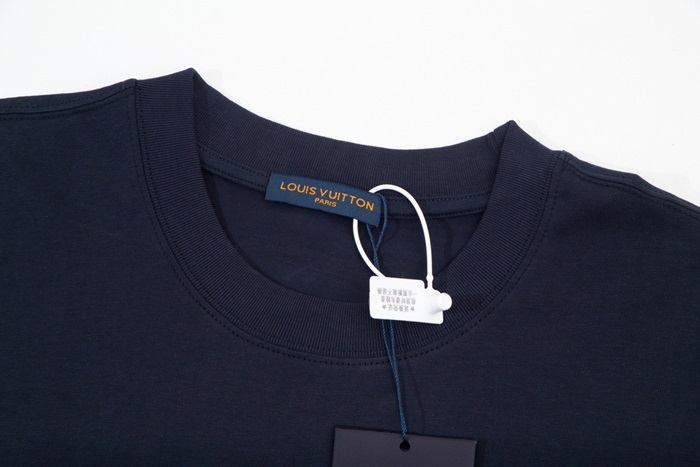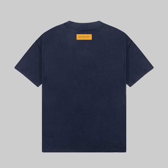 ルイヴィトンメンズネイビークルーネック半袖Tシャツv1373