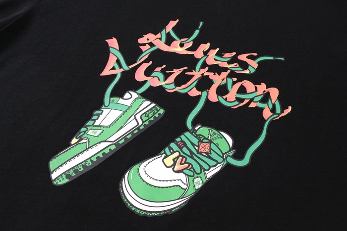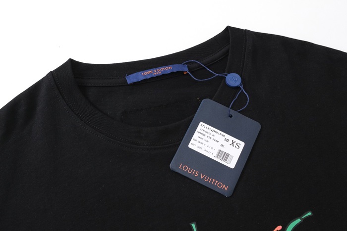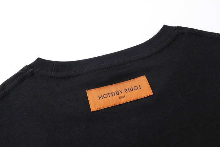 ルイヴィトンメンズブラッククルーネック半袖Tシャツv1378
