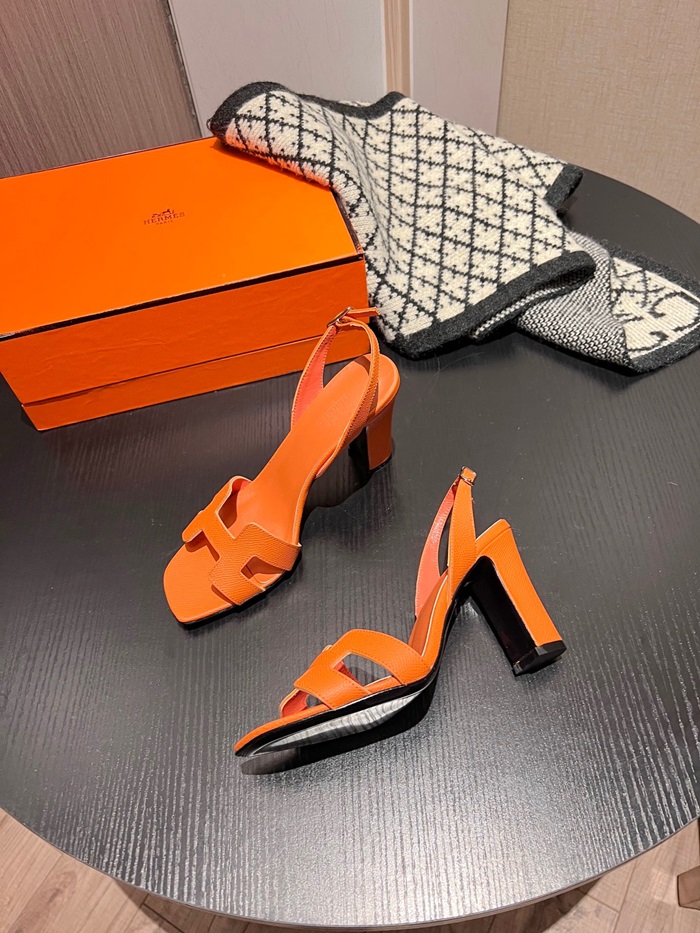 エルメスレディースオレンジハイヒールシューズe220