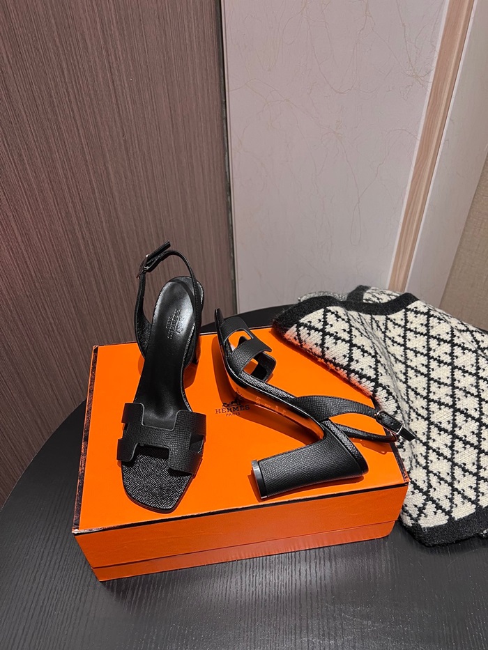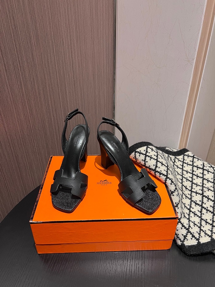 エルメスレディースブラックハイヒールシューズe221