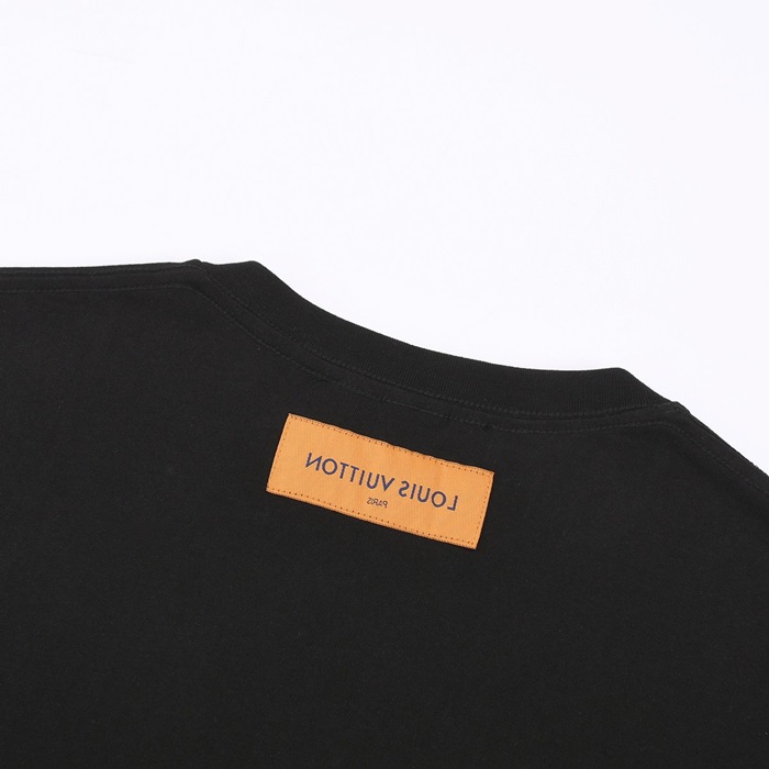 ルイヴィトンメンズブラッククルーネック半袖Tシャツv1392