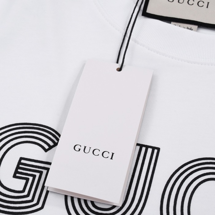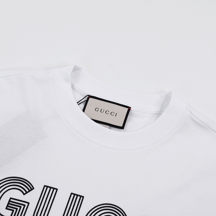 グッチユニセックスホワイトクルーネック半袖Tシャツu772