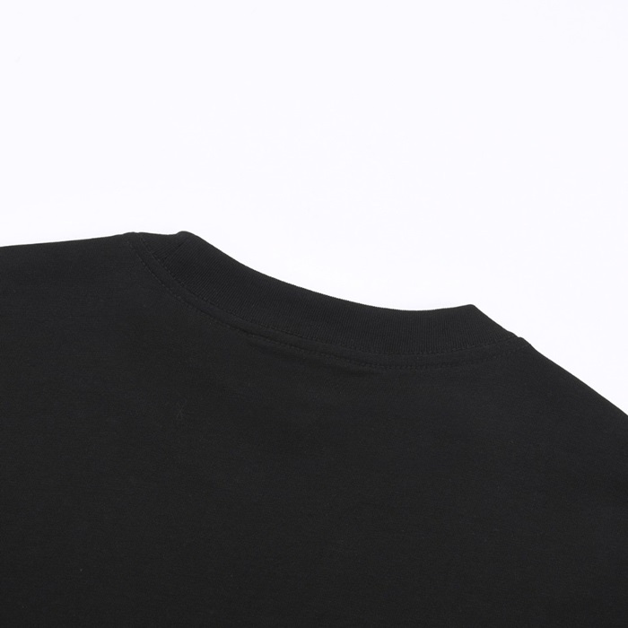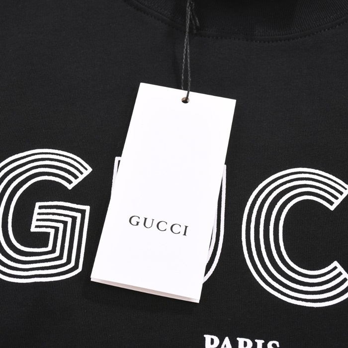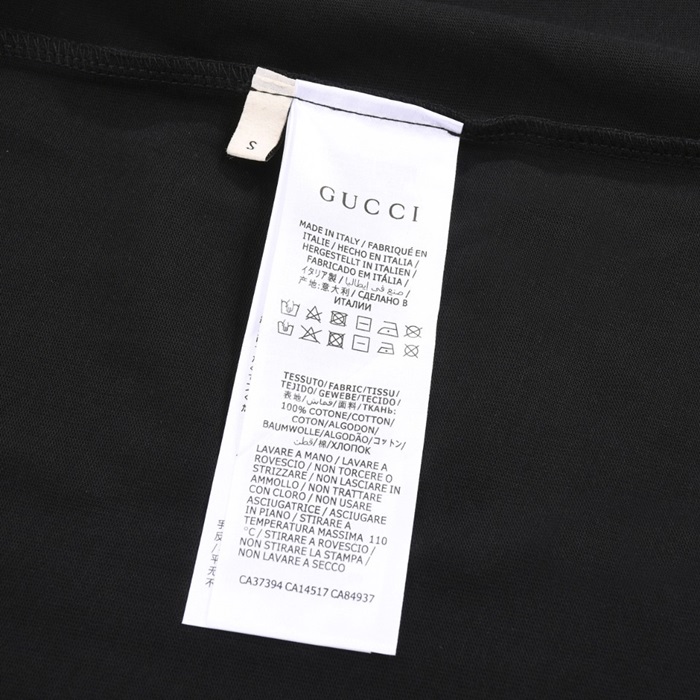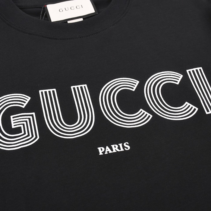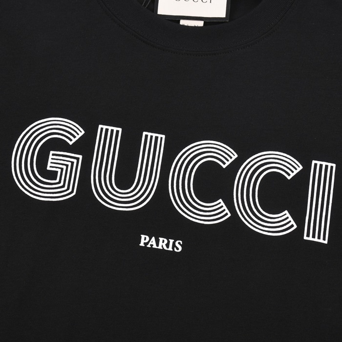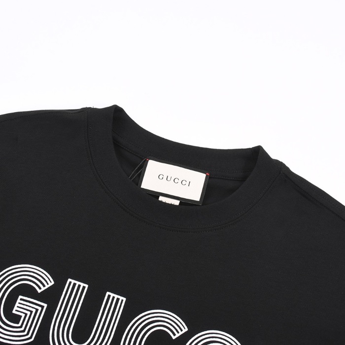グッチユニセックスブラッククルーネック半袖Tシャツu773