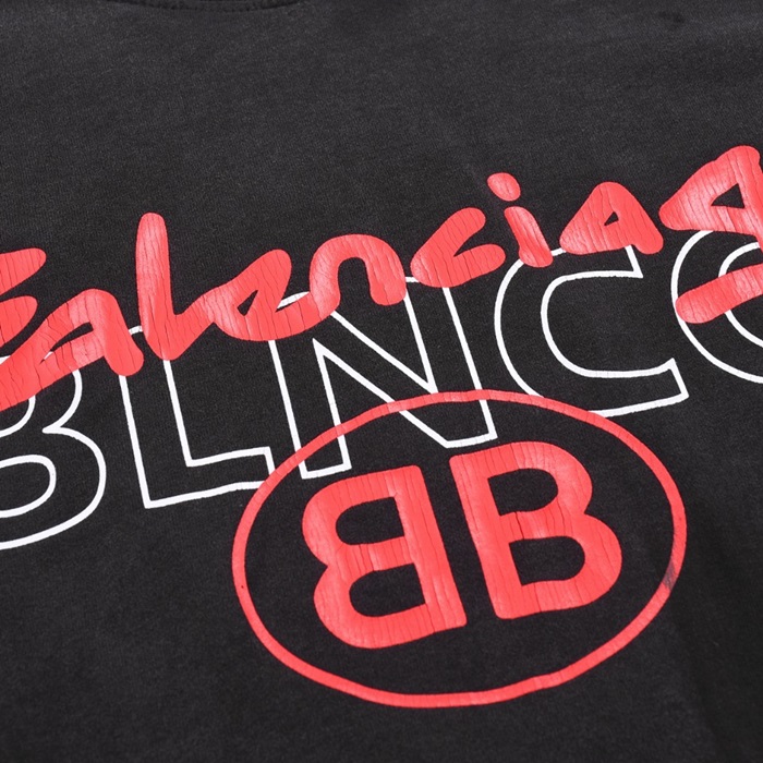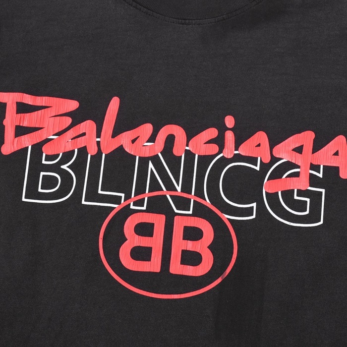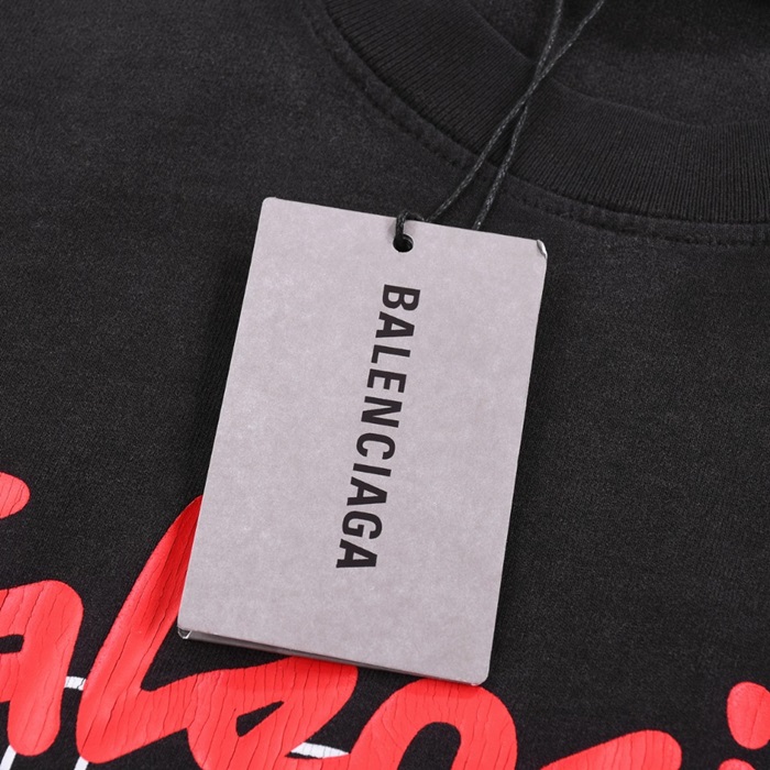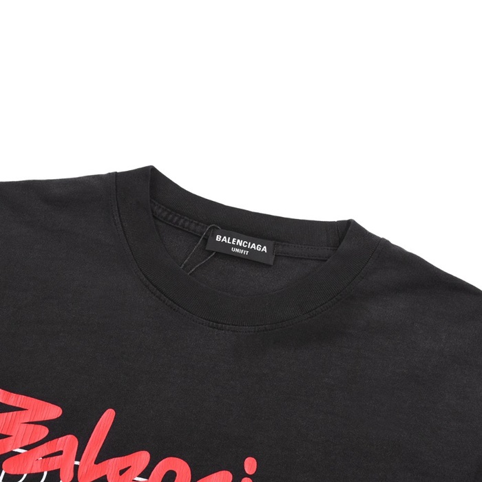 バレンシアガメンズブラッククルーネック半袖Tシャツa488