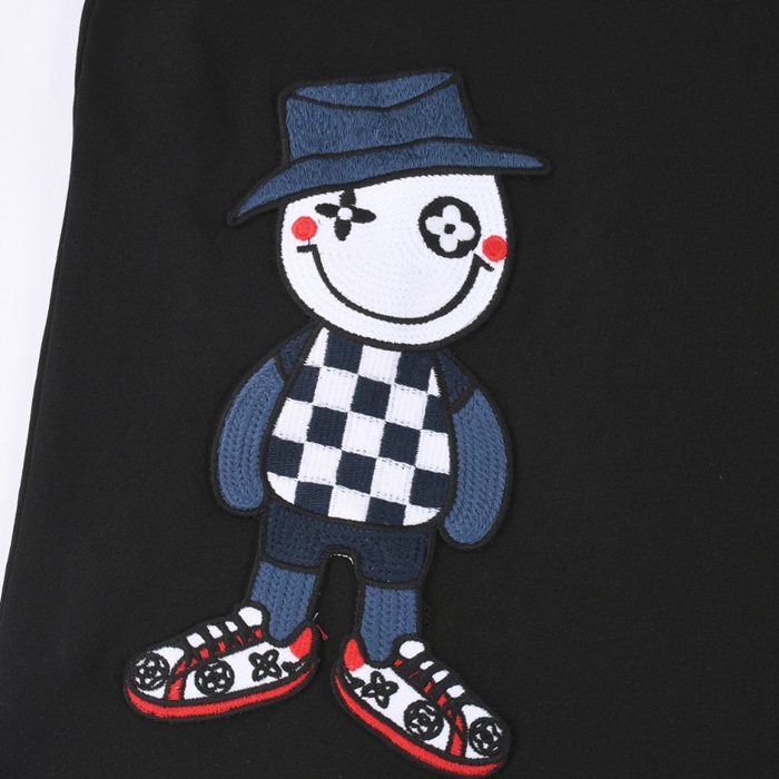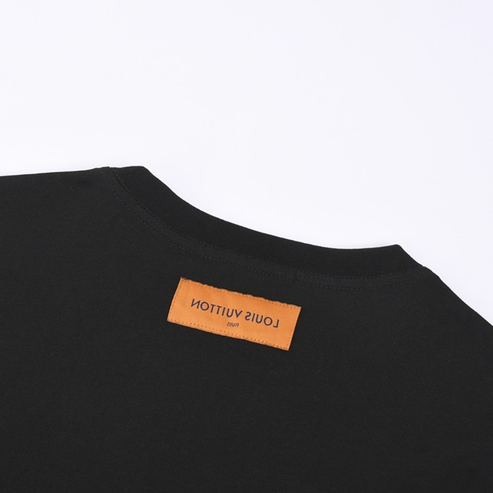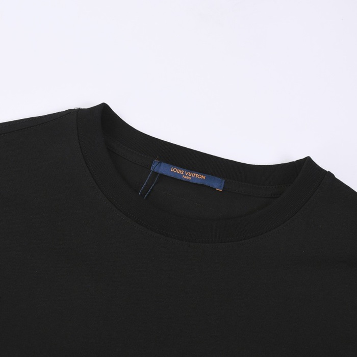 ルイヴィトンメンズブラッククルーネック半袖Tシャツv1403