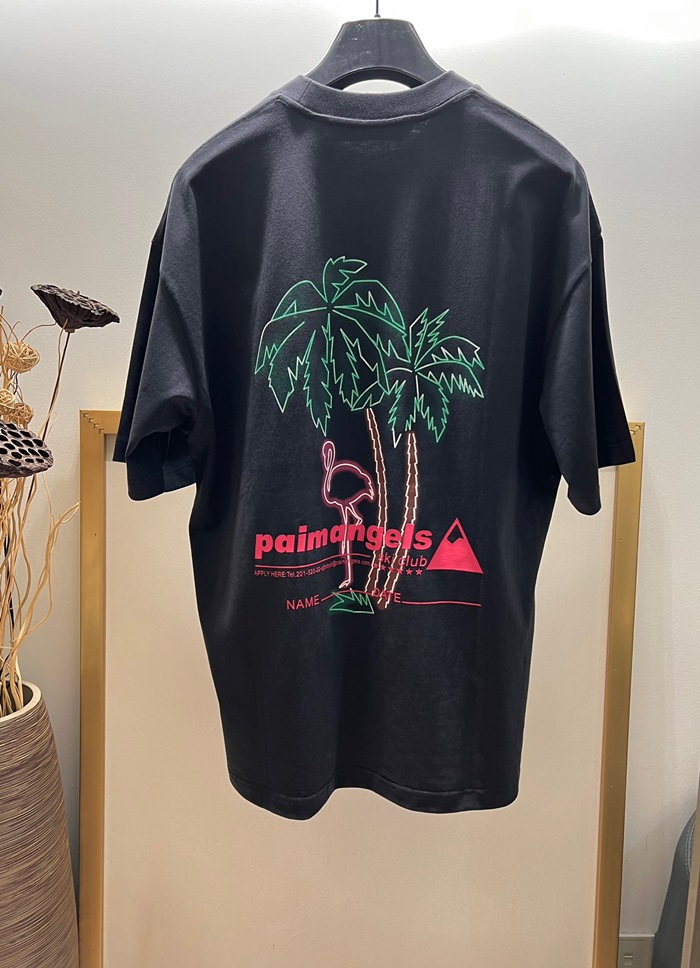 パームエンジェルスメンズブラッククルーネック半袖Tシャツm408