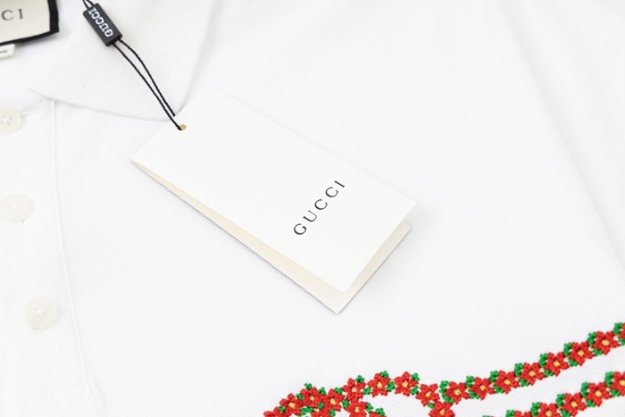 グッチユニセックスホワイトポロ半袖Tシャツu779