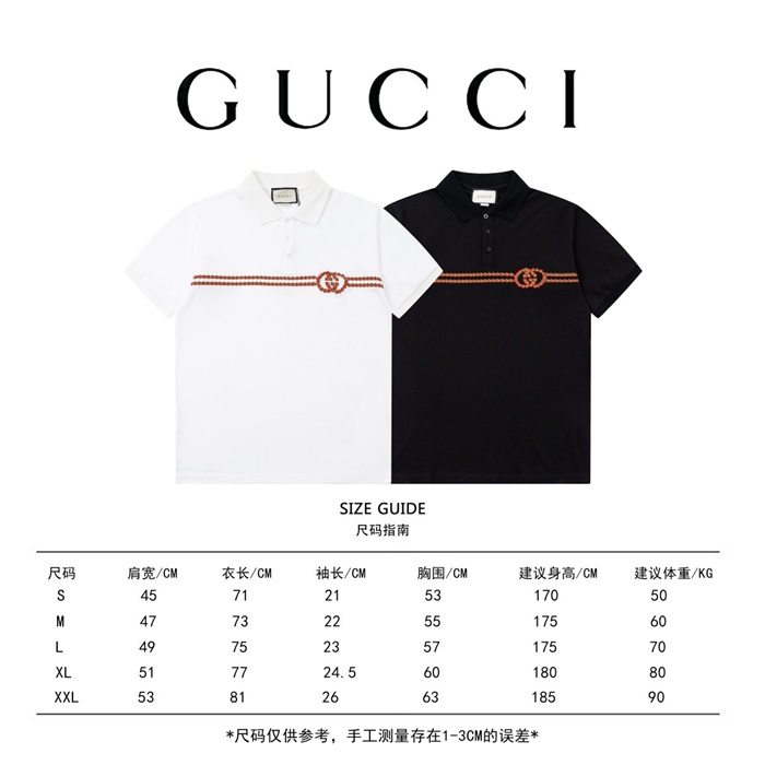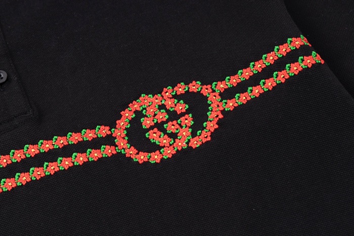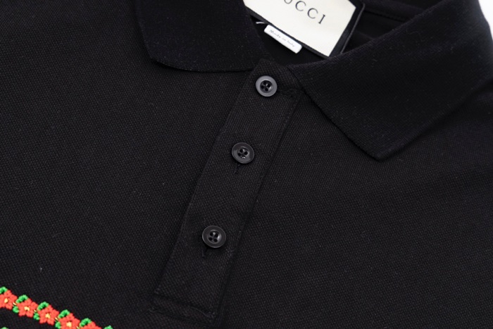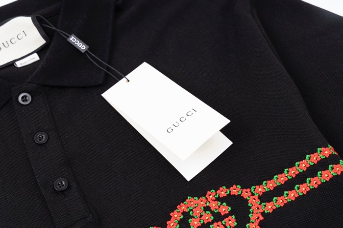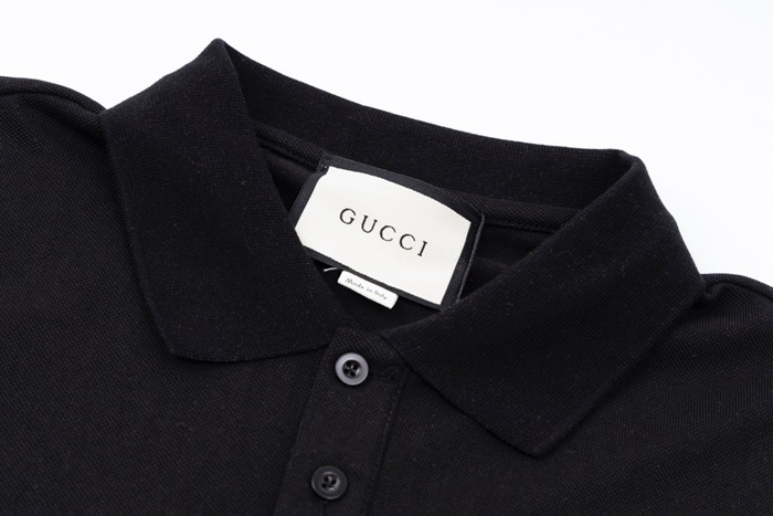 グッチユニセックスブラックポロ半袖Tシャツu780